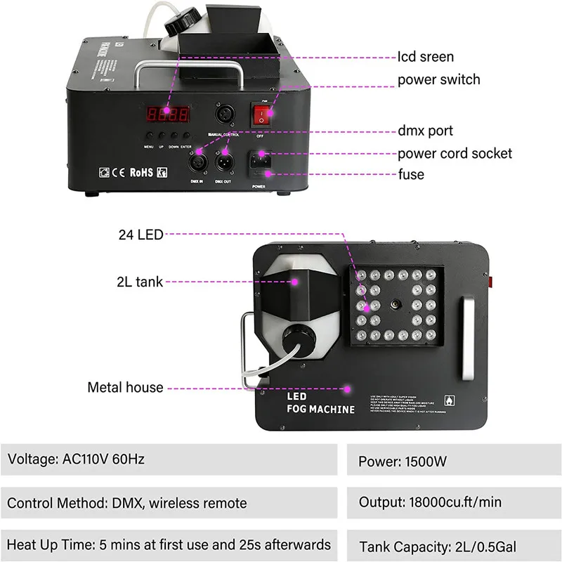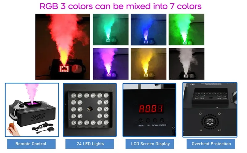 DJ bar wedding remote DMX vertical smoke 1500W 24*3W LED fog machine
