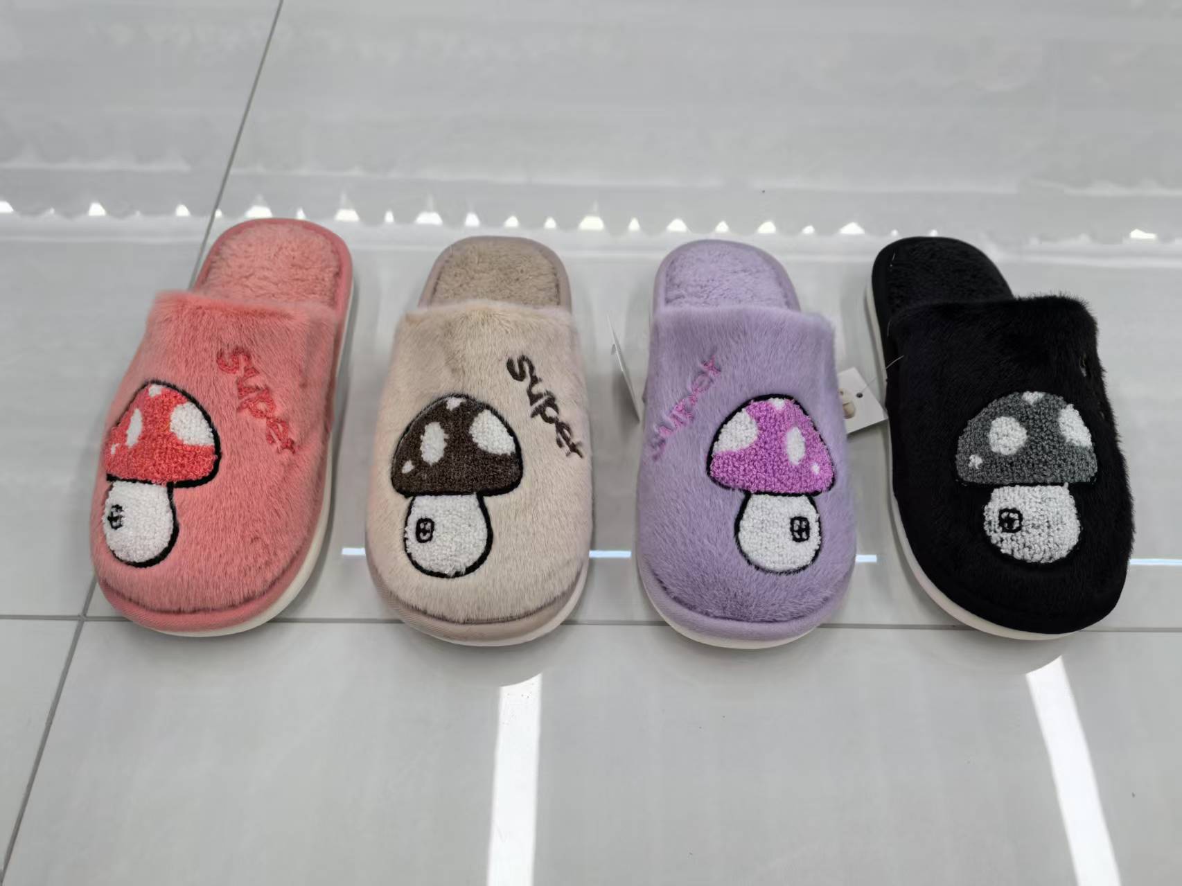 2025 new mushroom embroidered furry ladies floor slippers skin-friendly comfortable and non-slip warm home essential woolen slipper 中文版