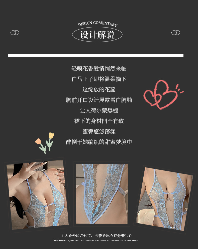 sexy lingerie sexy lace-free one-piece strap see-through pajamas hollow hot pure sexy lingerie 中文版