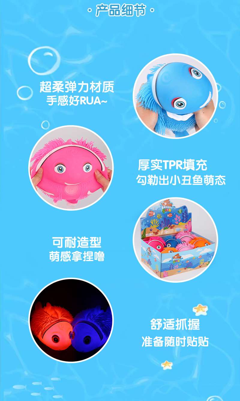 animal children's dense hair ugly fish squeezing toy hairy ball thorn ball decompression elastic ball decompression elastic toy