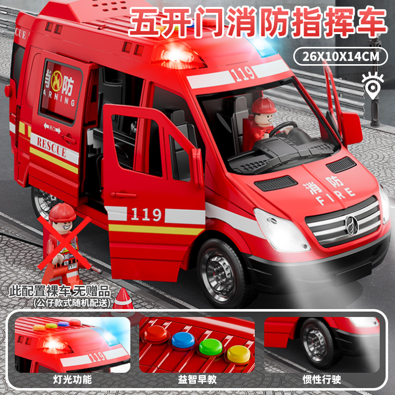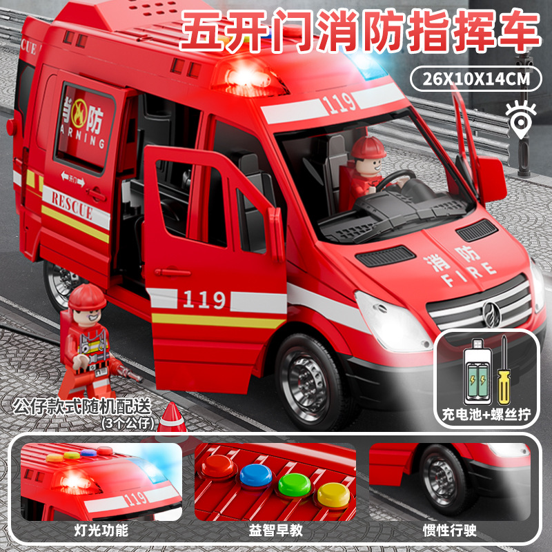 (send battery + send 3 dolls) oversized simulation fire truck [5 doors with sound and light]]