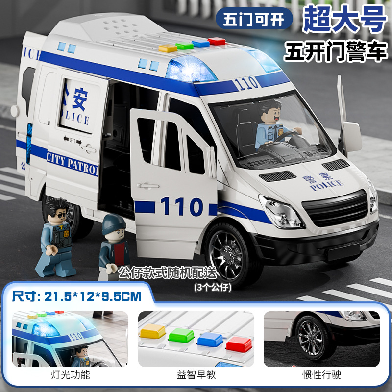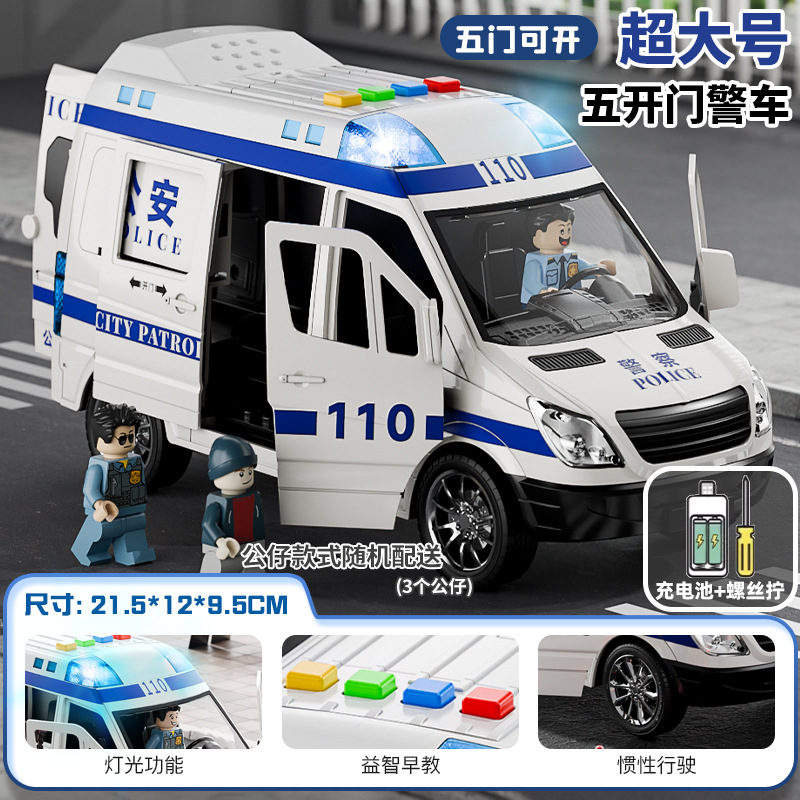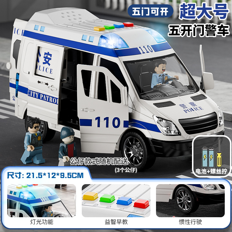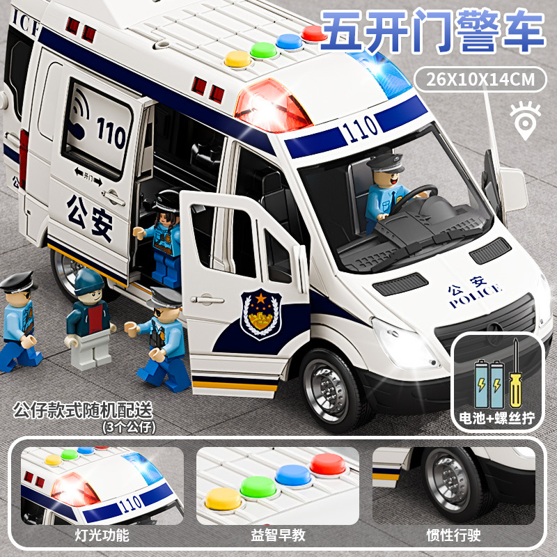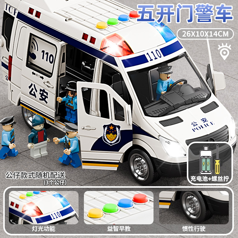 (get rechargeable battery +3 dolls for free) oversized simulation police vans [5 doors with sound and light]]