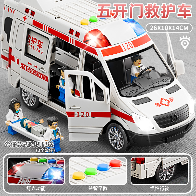 (send 3 dolls + stretcher) oversized simulation ambulance [5 doors with sound and light]]