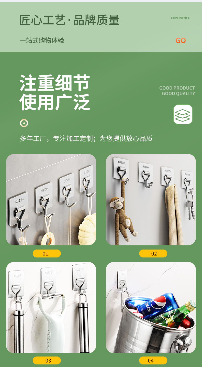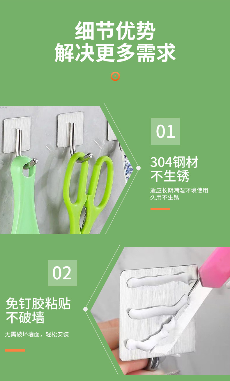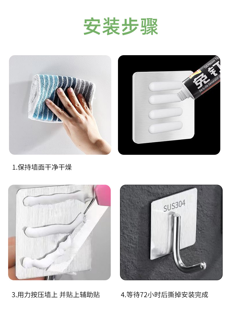 silver stainless steel hook (including adhesive)