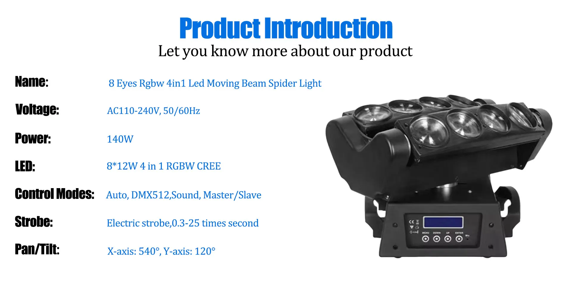 8x10W RGBW 4in1 LED Spider Beam Moving Head Light