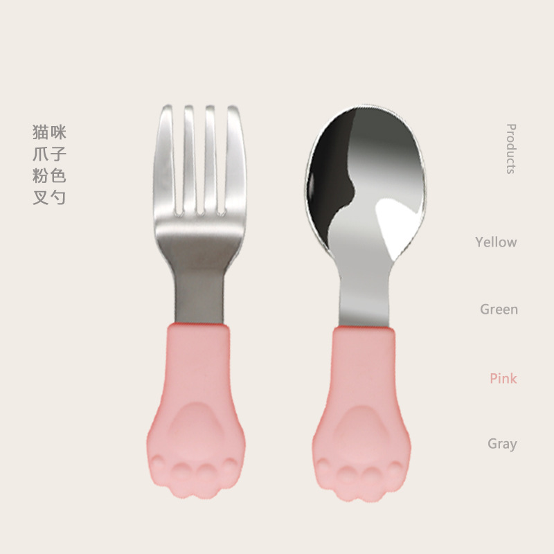 pink cat's paw shape fork spoon