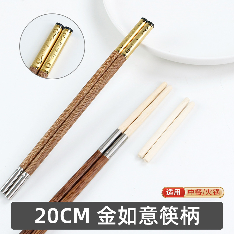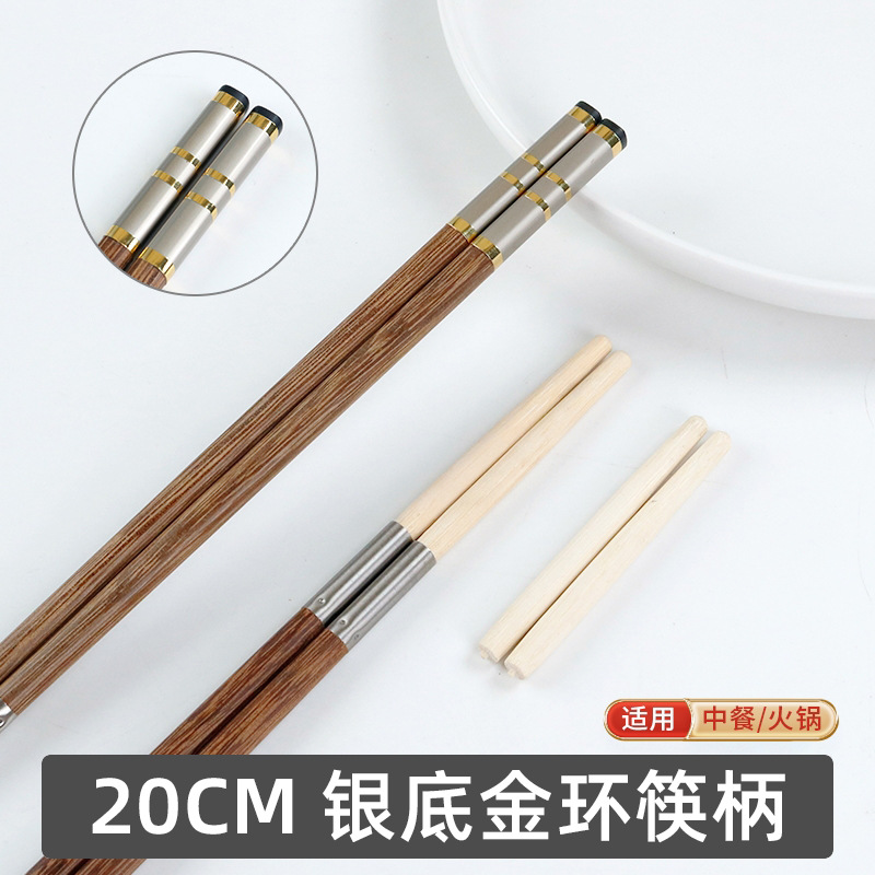 20cm silver low gold ring chicken wings wooden chopsticks handle-10 pairs