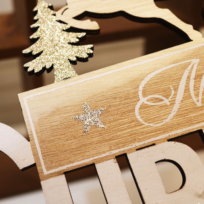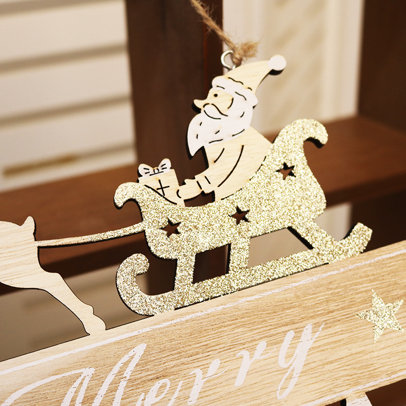 Product Name: Wooden Flat Christmas Santa Deer Sleigh Merry Christmas English Letter Sign