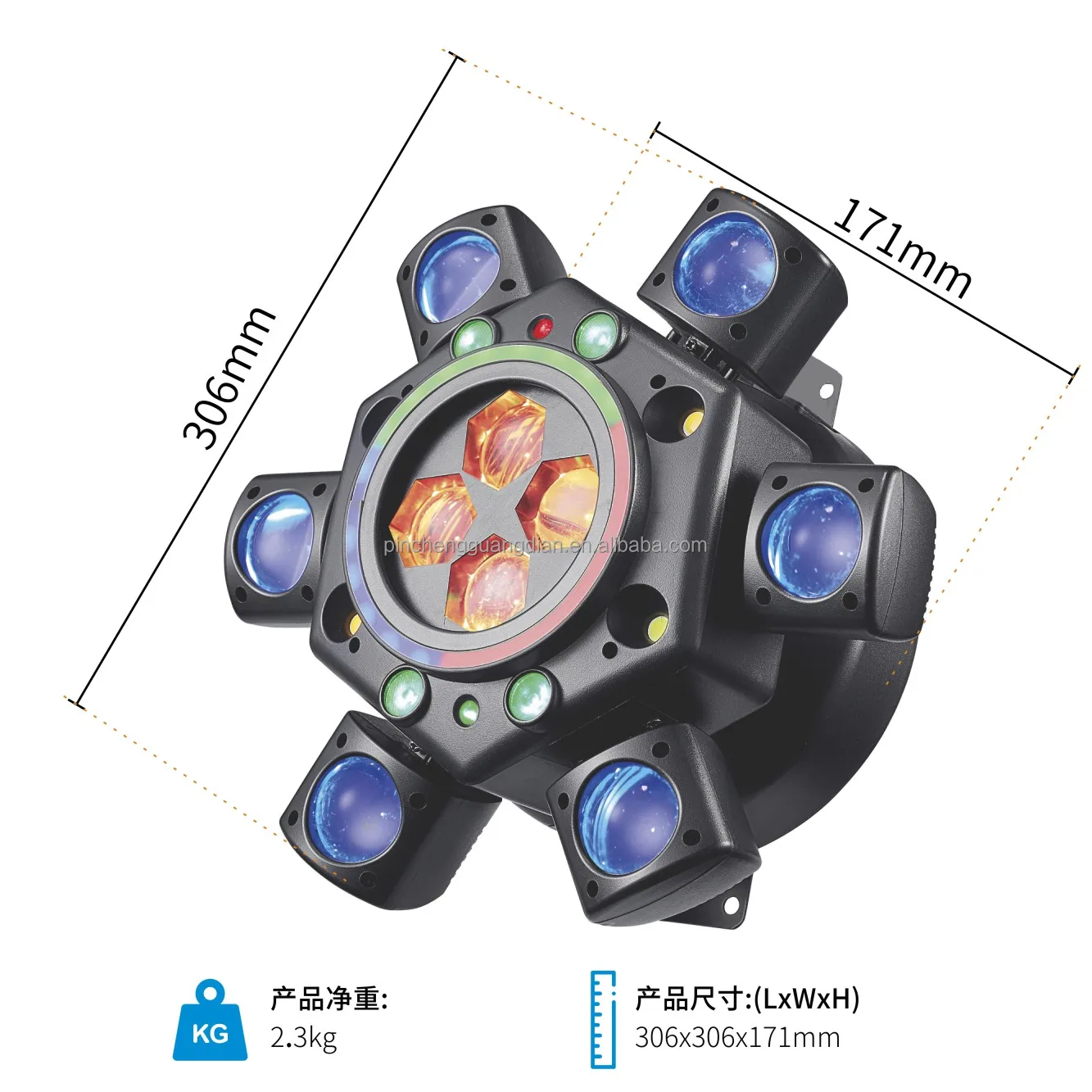 10 PCS CREE 10W RGBW ball, 4PCS 3535 8W RGBW ball,1 PCS 50mW red laser,1PCS green laser,2PCS 10W white LED,2PCS 10W yellow LED,22PCS 5050 0.2WLED