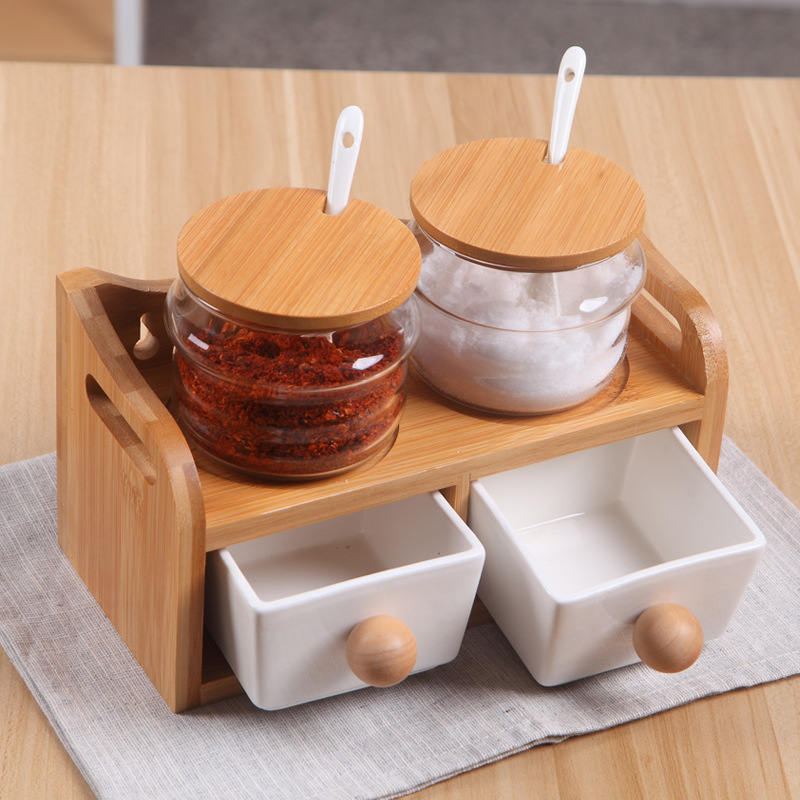 four-drawer wavy glass cover, one pot and one can