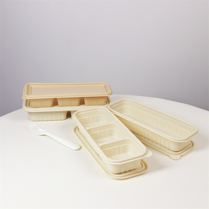 corn starch bio-based biodegradable rectangular lunch box takeaway rice to-go box light food to-go box points 中文版