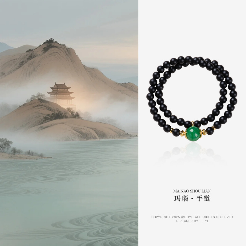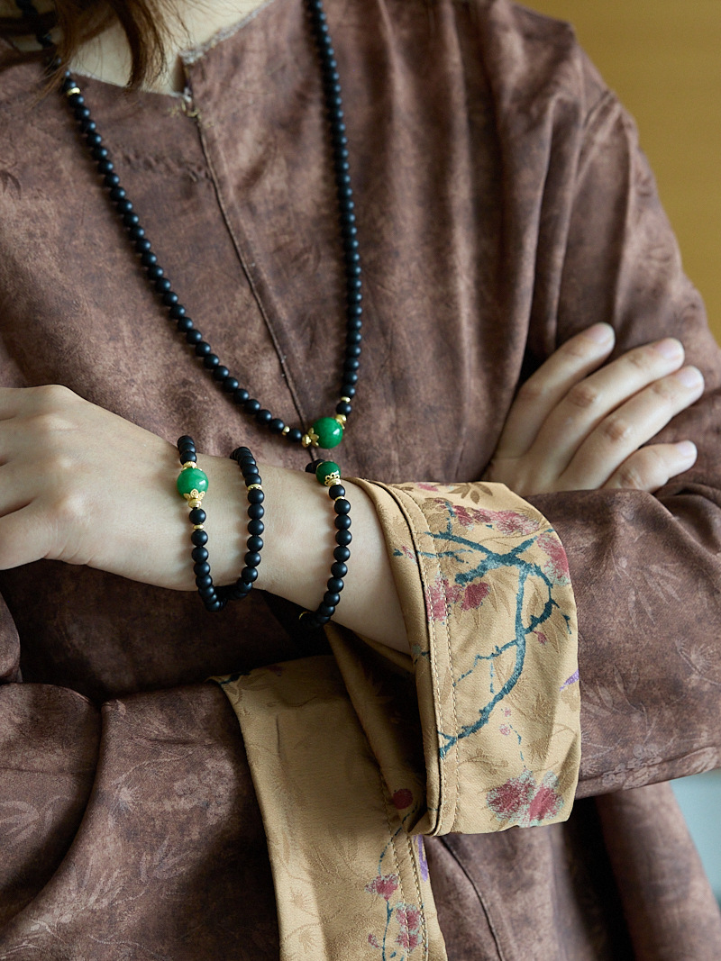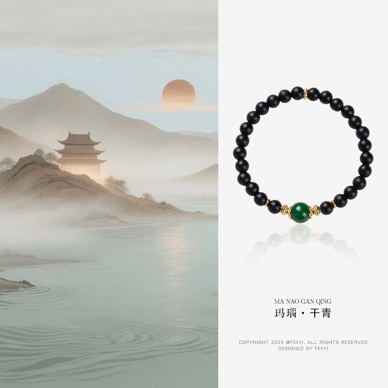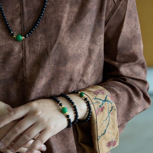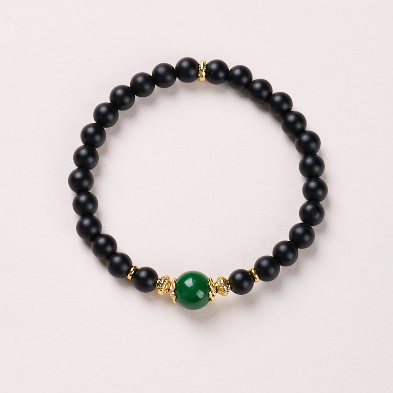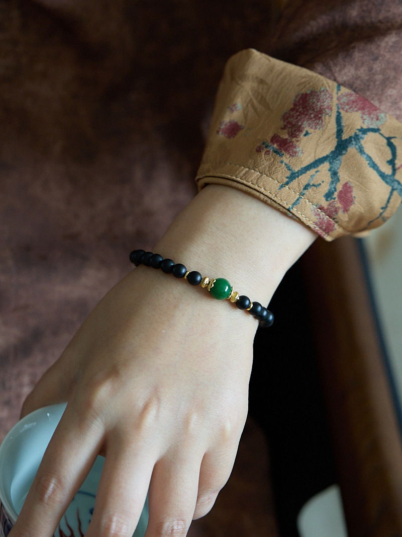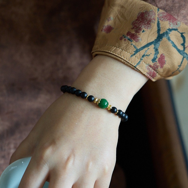 | Main Material | 6MM Sandblasted Black Agate, Dry-green Jade, Copper-plated Gold Accessories, Suitable for Wrist Circumference 14-16cm