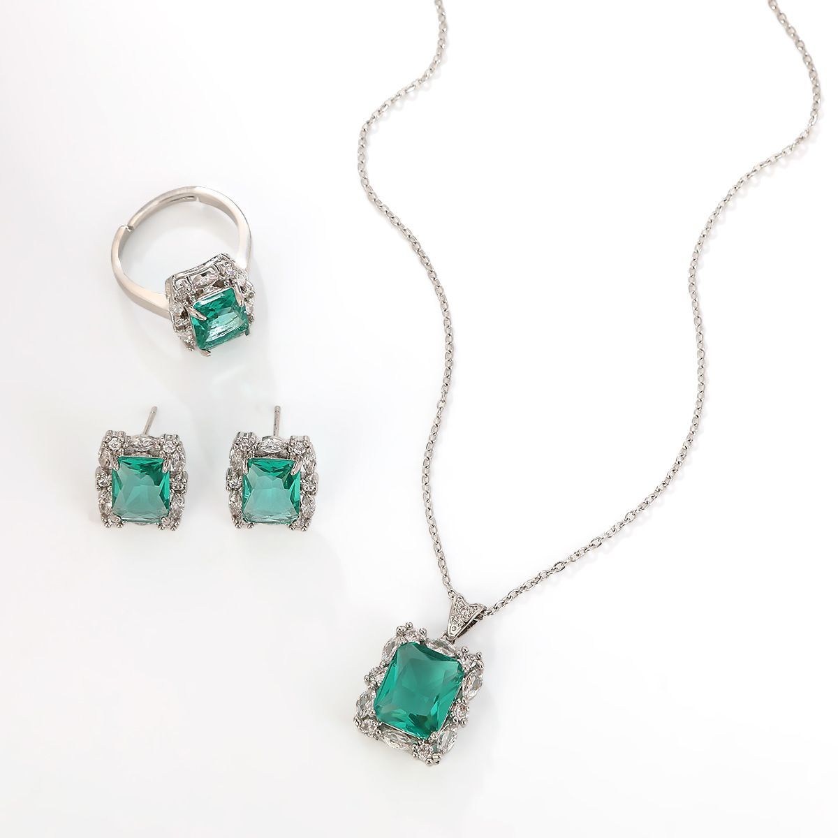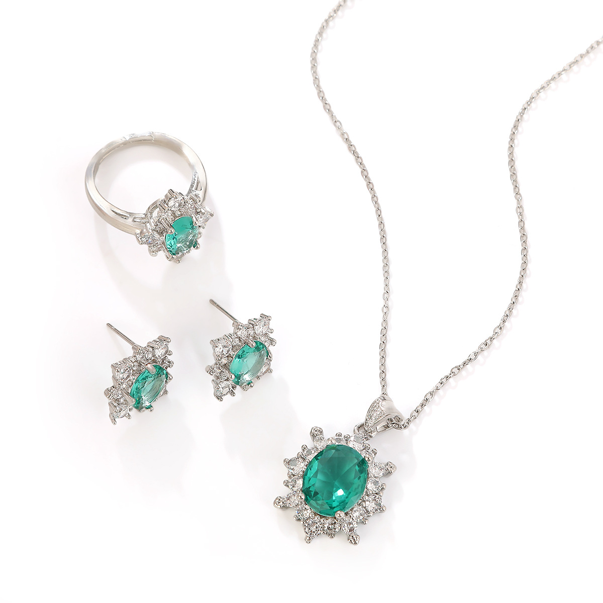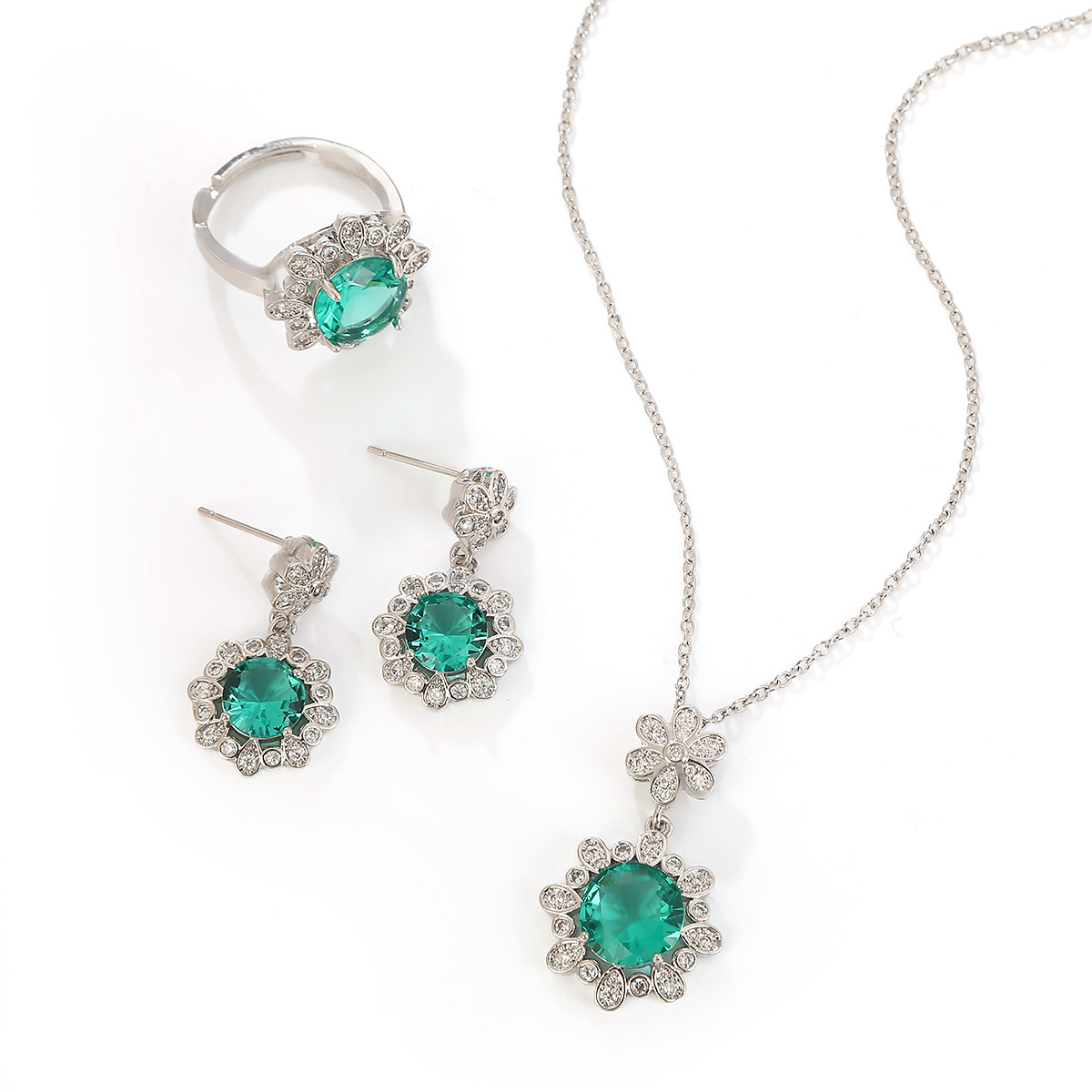 four-leaf clover set silver