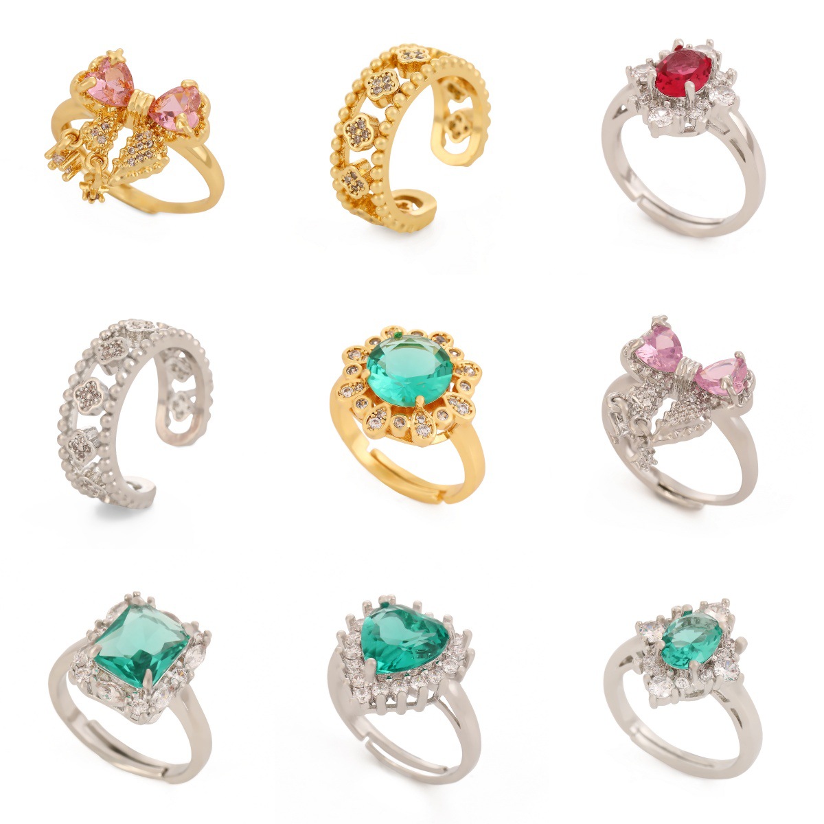 pink love heart bow tie ring gold