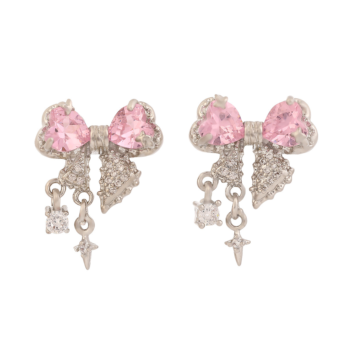 pink love heart bow tie stud earrings a pair of silver