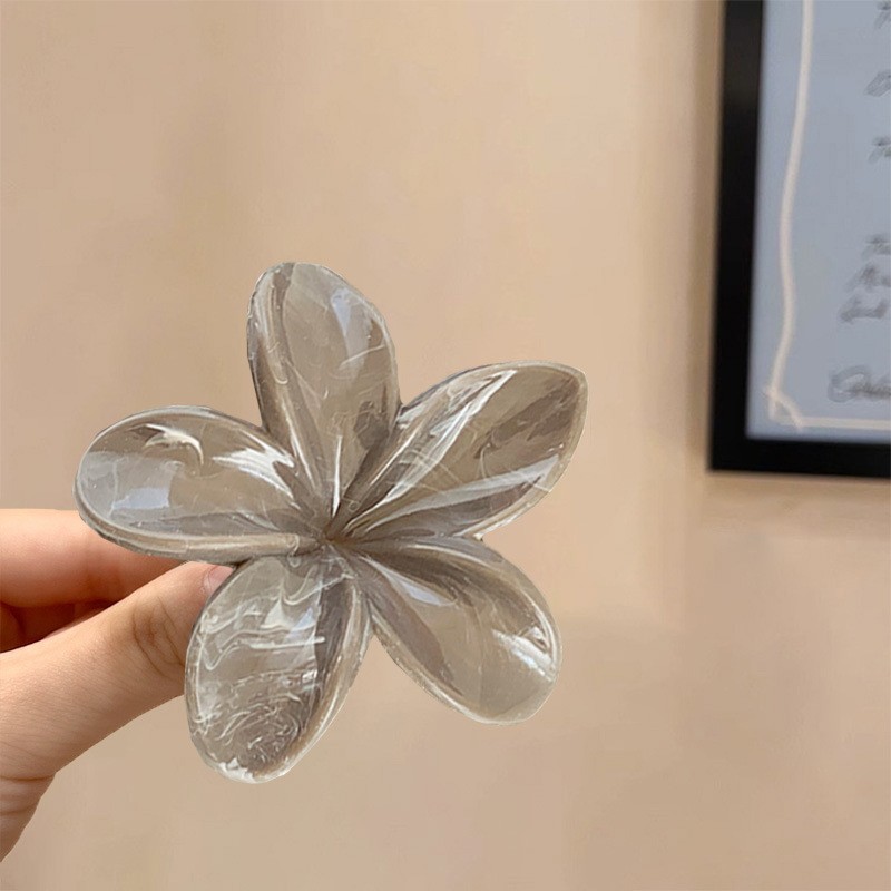 black edge beige flower hair clip