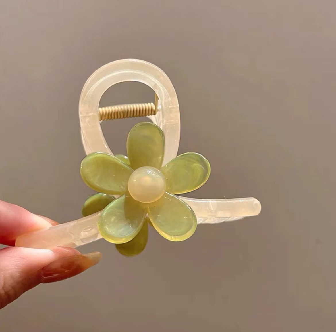 1 & translucent green flower hair clip (about 8cm long)