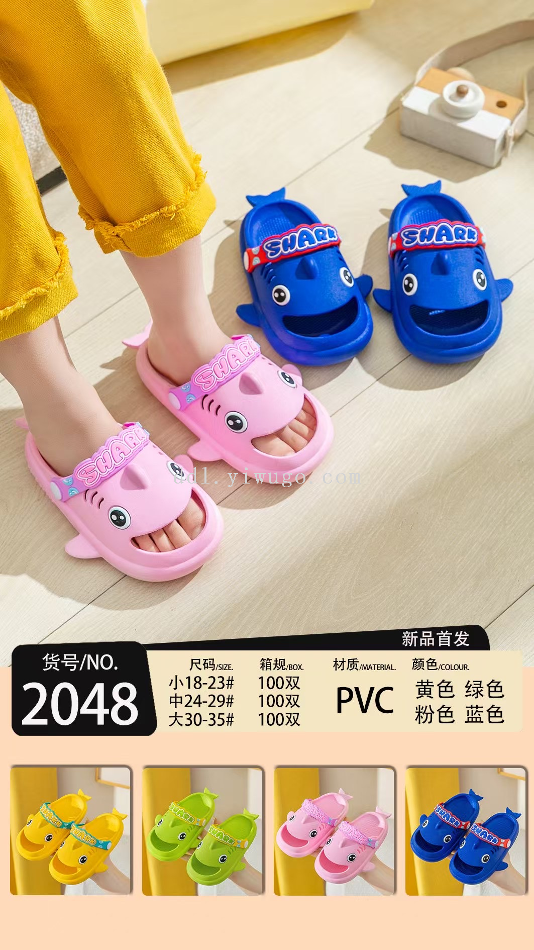 new children's sandals boys and girls 2-6 years old baby toddler cute cartoon shark non-slip hole slippers 中文版