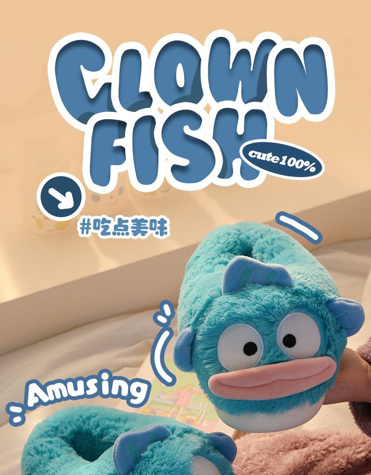 clownfish cotton slippers women's winter cotton slippers couple winter fluffy slippers men's home indoor confinement shoes autumn and winter 中文版