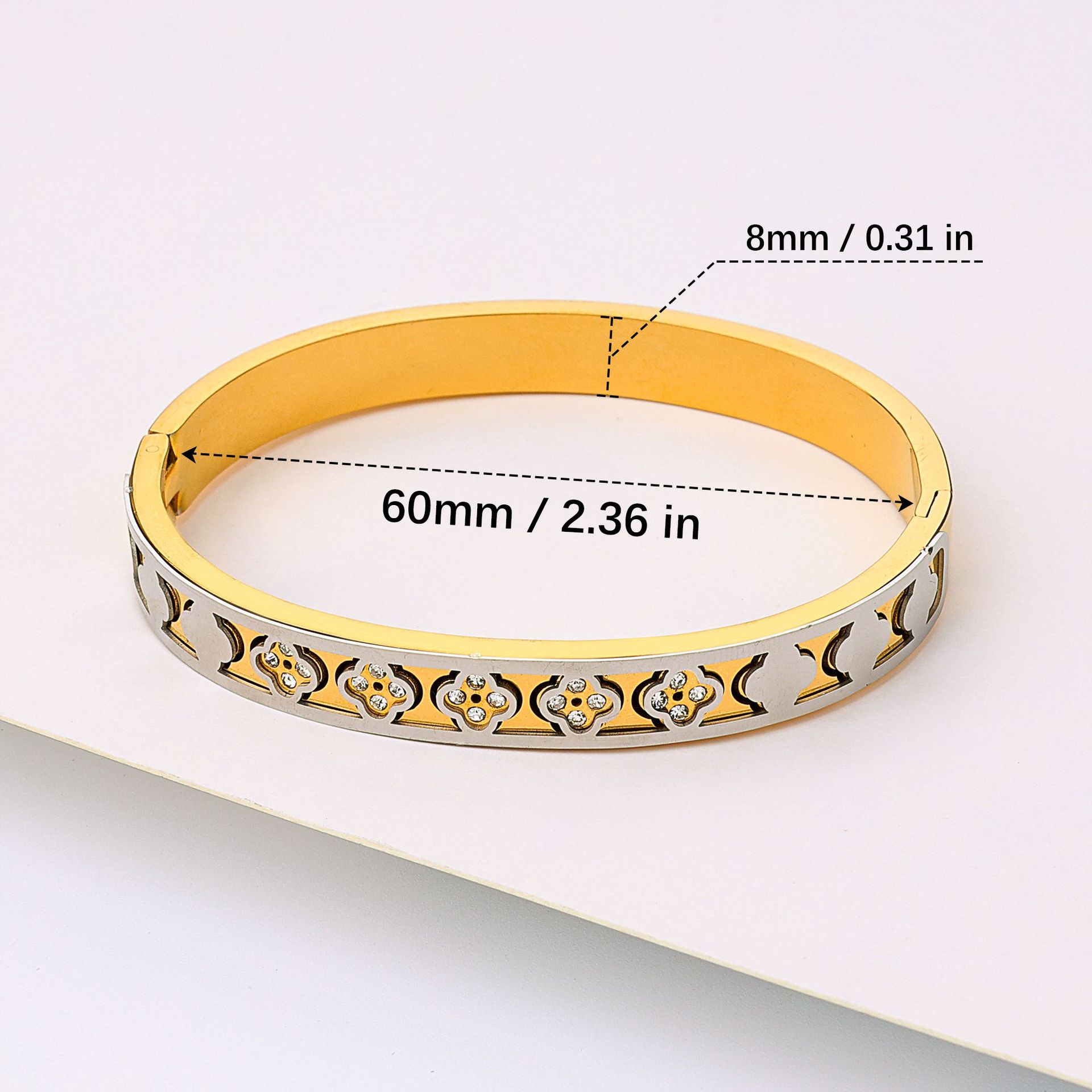 cross-border e-commerce hot-selling product women's fashion five-leaf flower diamond buckle design gold-plated titanium steel bracelet factory wholesale