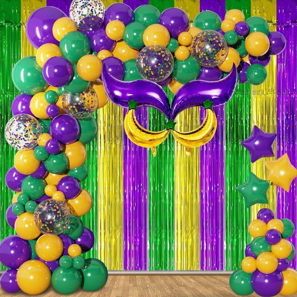 115 pieces carnival balloon purple green gold balloon ribbon colorful paper scrap balloon carnival 中文版
