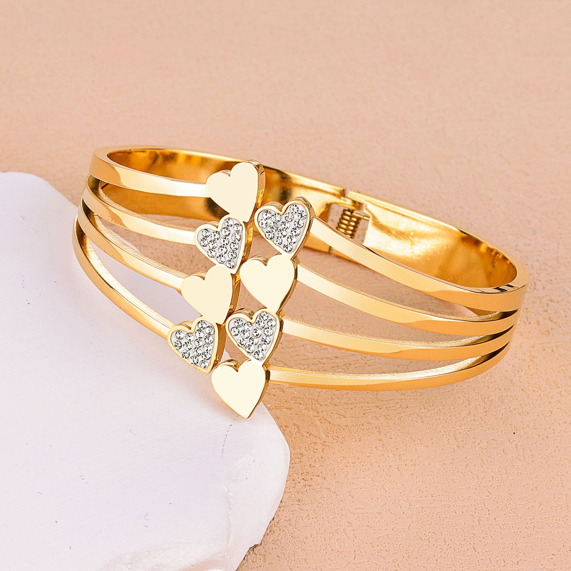 european and american fashion ladies' bracelet personality ladies' bracelet cross-border simple spring buckle heart shape with diamond titanium steel bracelet