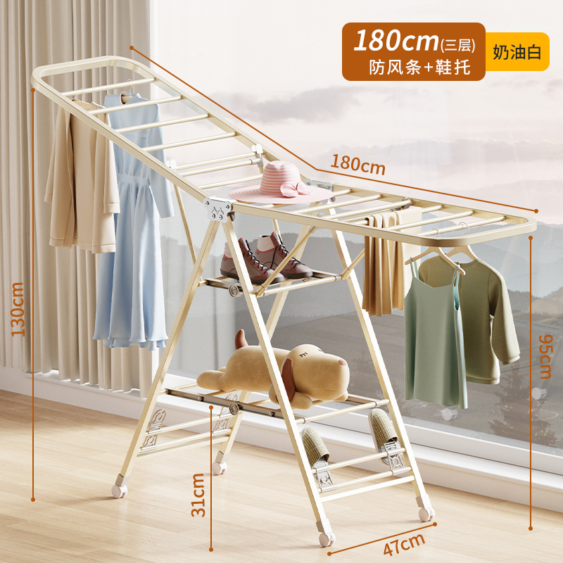 household clothes hanger floor indoor and outdoor folding wheeled wing hanger mobile carbon steel hanger drying quilt stand foreign trade