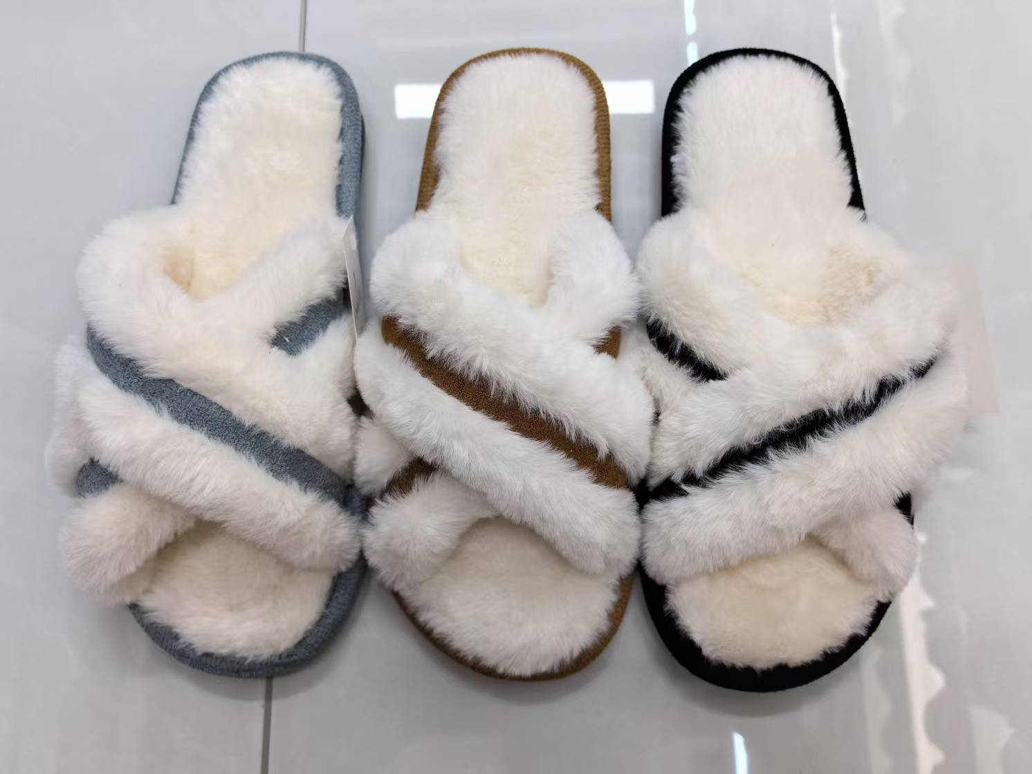 stylish opening ladies fluffy slippers woolen slipper interior home warm non-slip comfortable foreign trade export woolen slipper wholesale 中文版