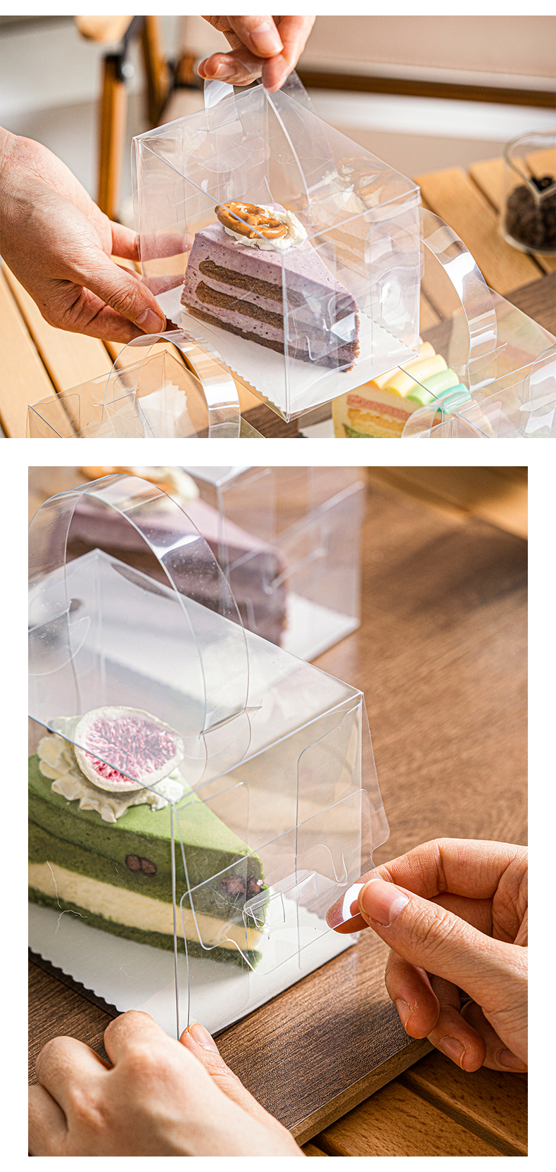 transparent multi-layer cake box triangle cut block cake/mousse kimchi dessert packing box baking packaging western point box 中文版