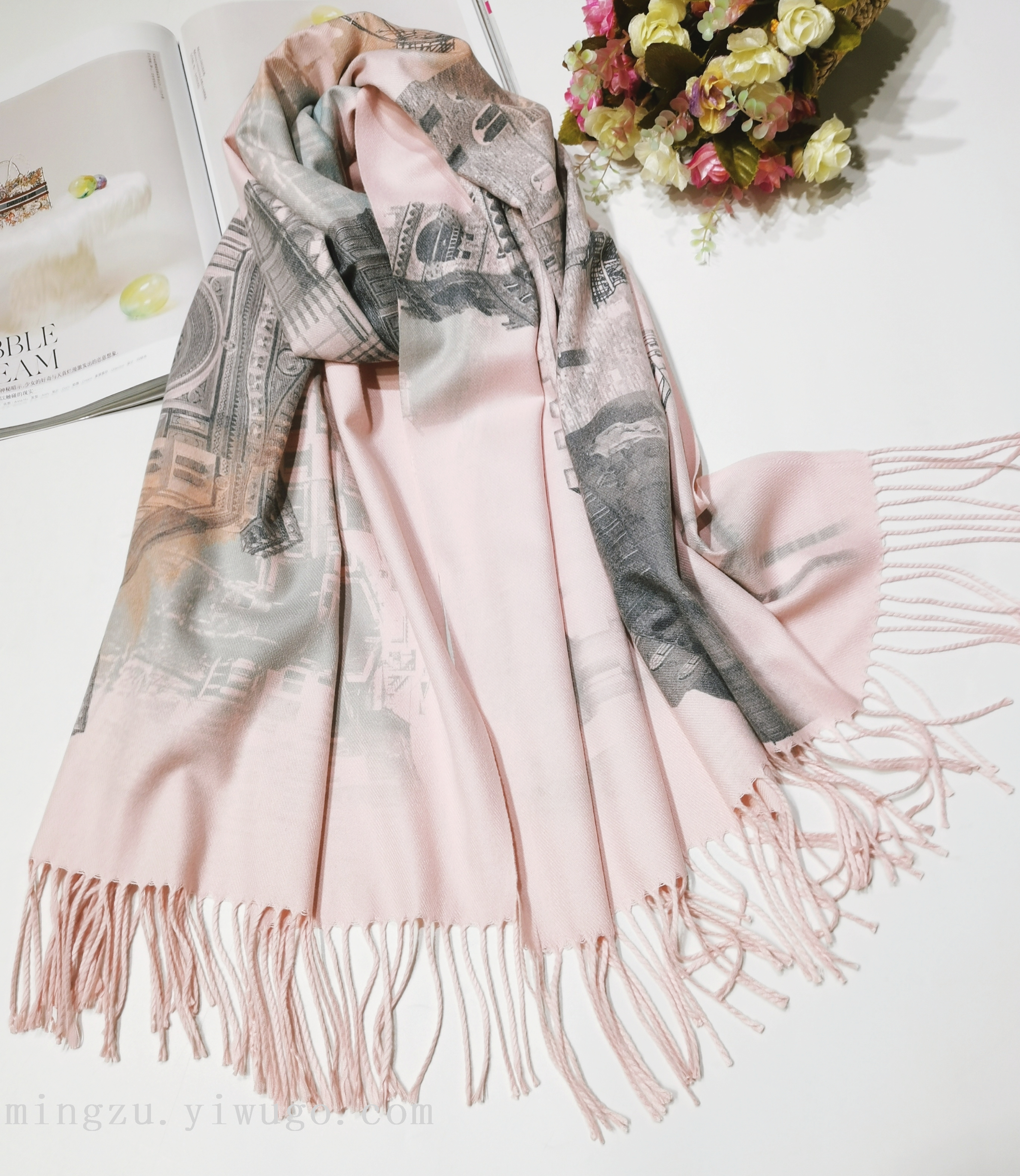 2025 digital printing british style building scarf double-sided girls' long headscarf elegant tassel shawl scarf