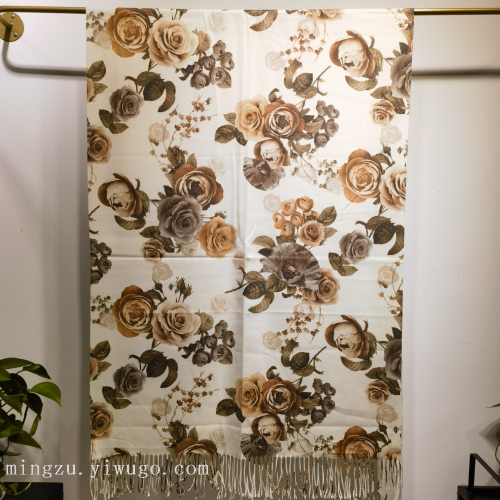 2025 best-selling foreign trade digital printing cashew flower scarf double-sided long scarf elegant tassel shawl scarf