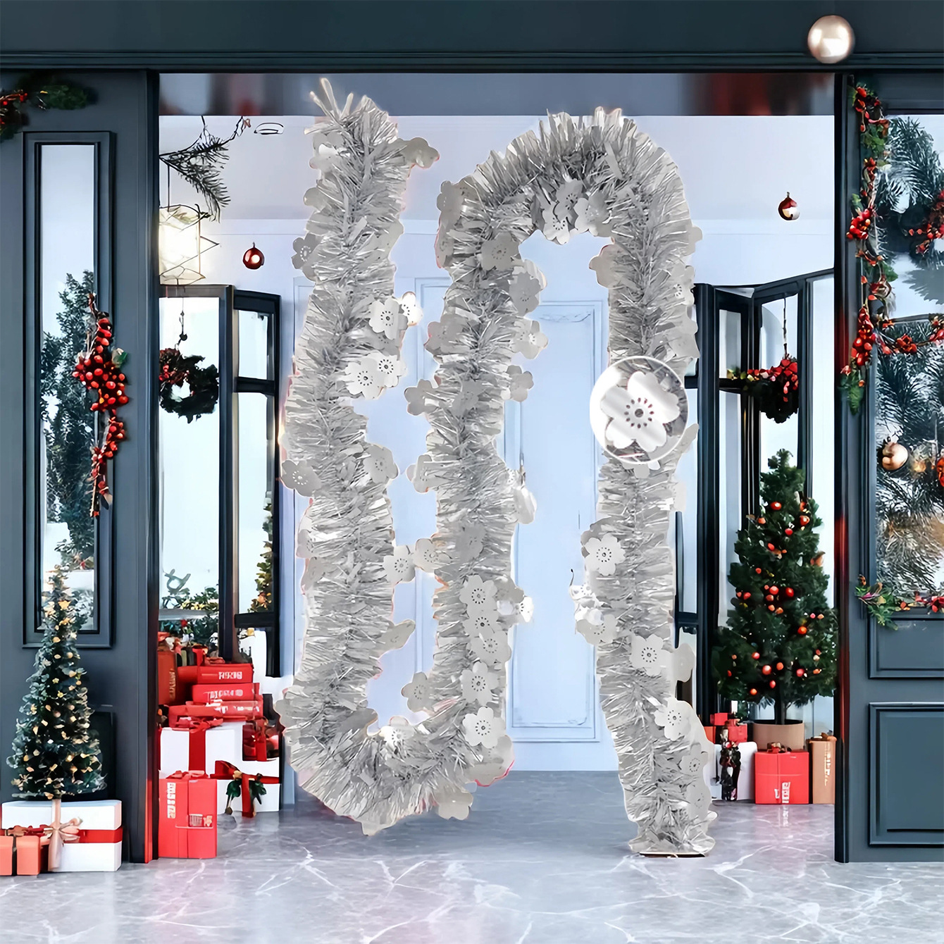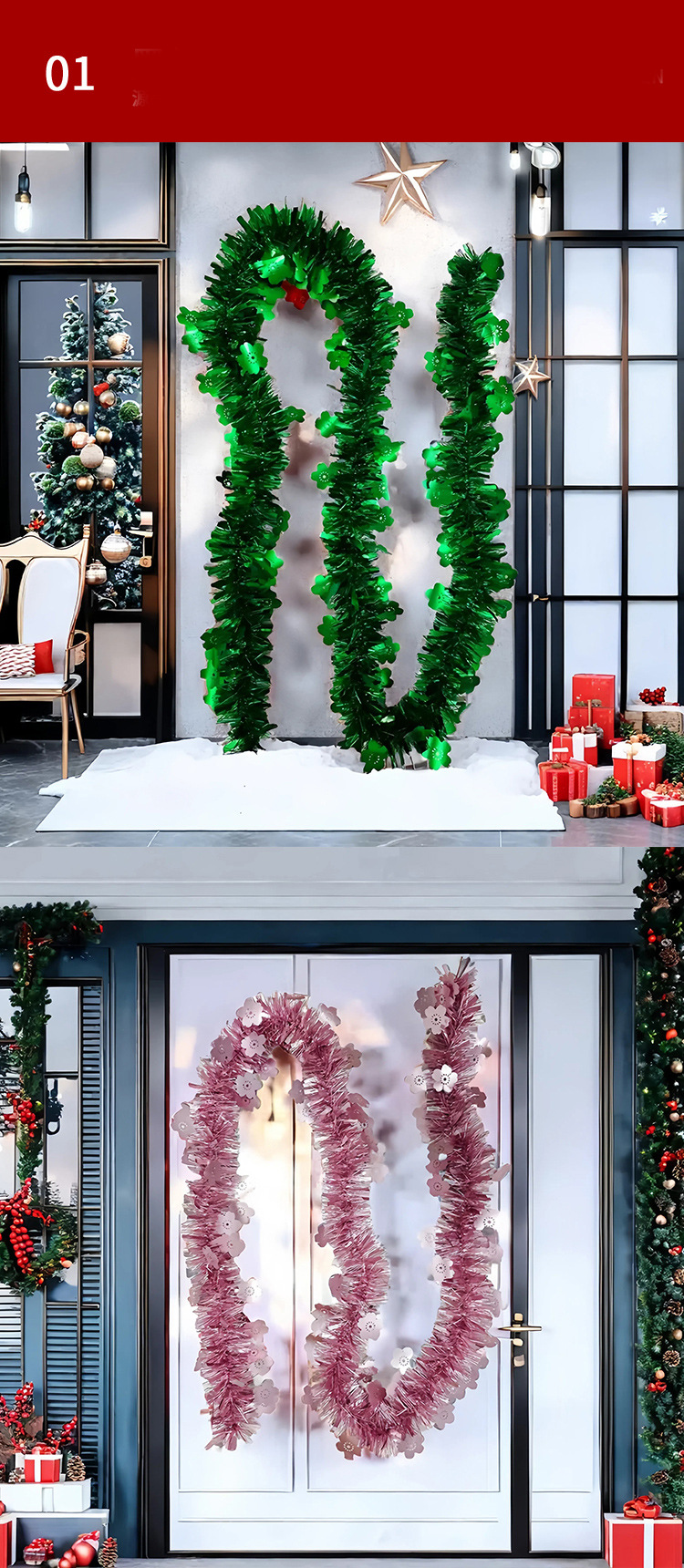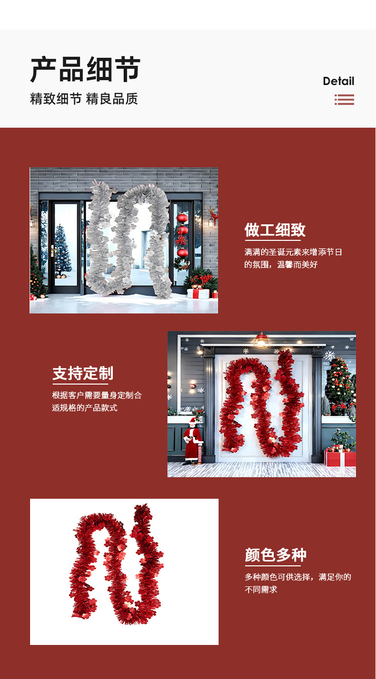2 m 9cm matte flower christmas tinsel christmas decoration metal feeling wool tops scene layout color bar garland 中文版