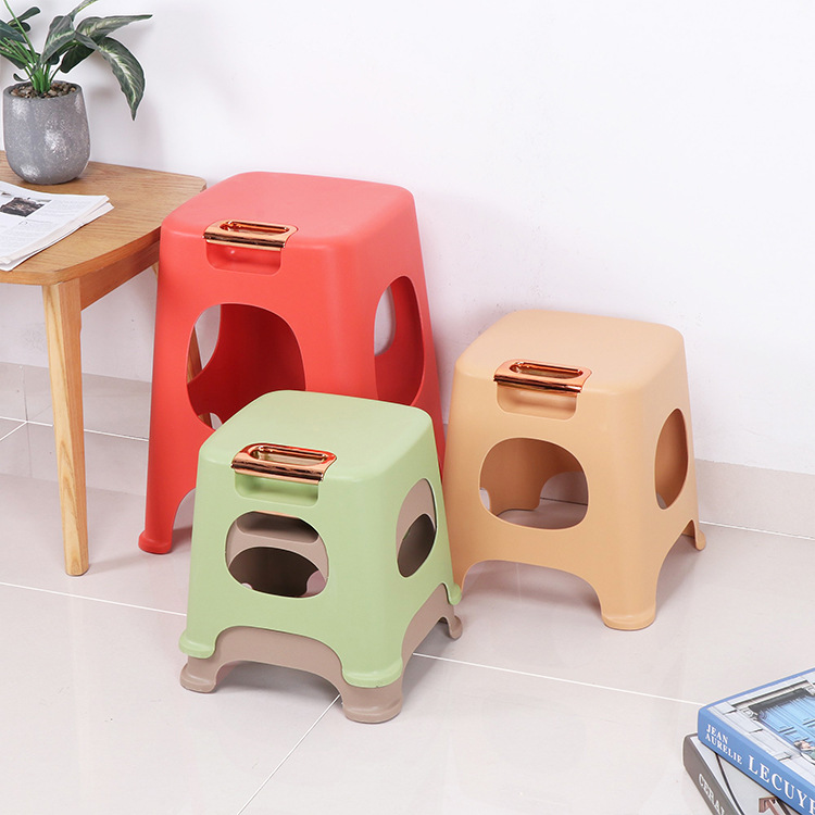 plastic padded chair household stackable gold handle stool shoe changing stool bathroom non-slip bath chair wholesale