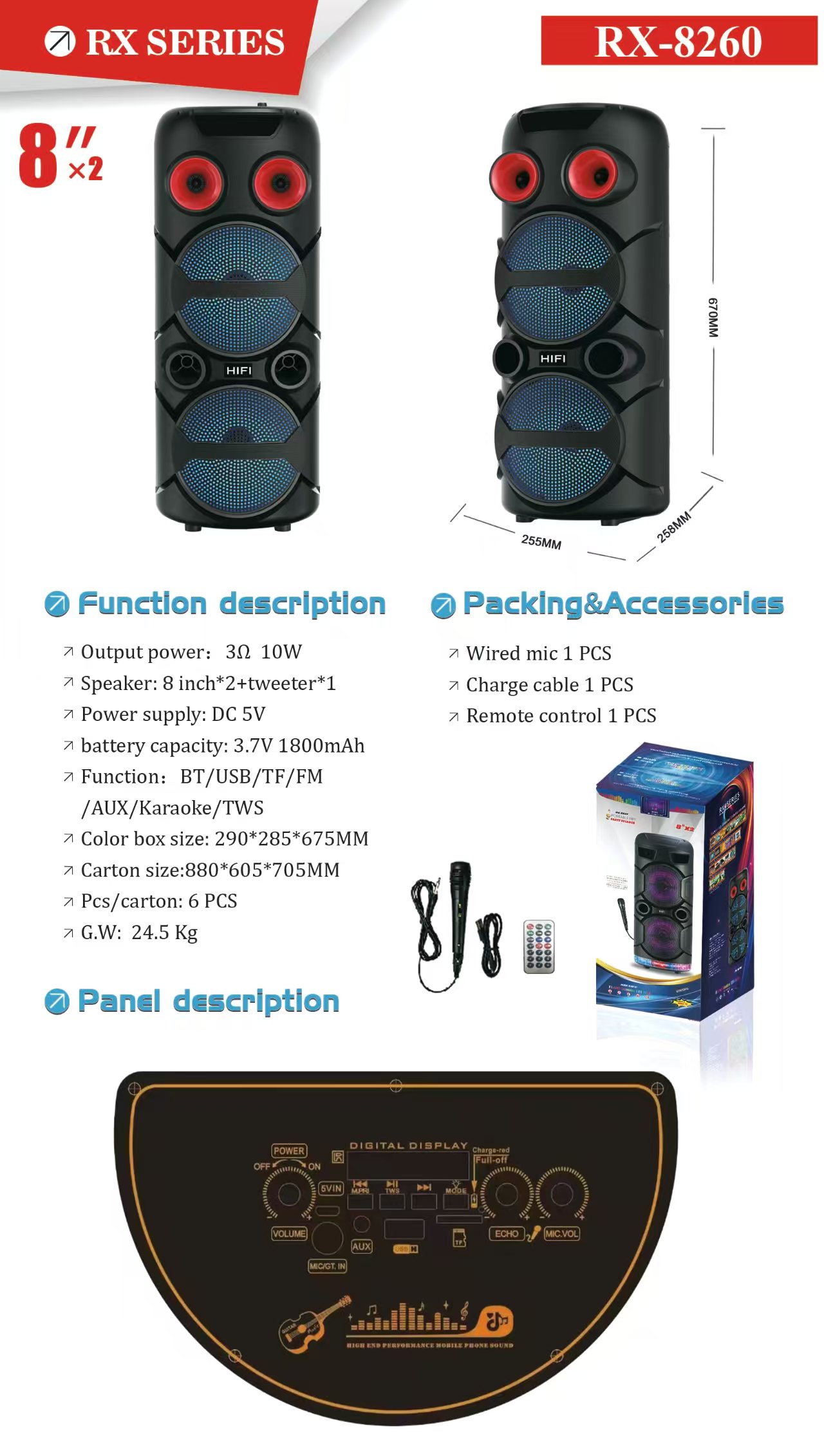 rgb lamp home subwoofer portable wireless bluetooth speaker with microphone karaoke double 8-inch speaker 中文版