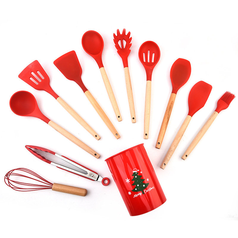 Product Name: Silicone Kitchen Utensils with Wooden Handle in Color
