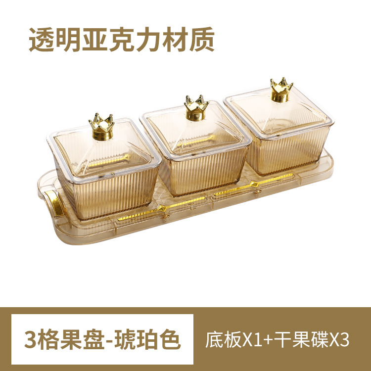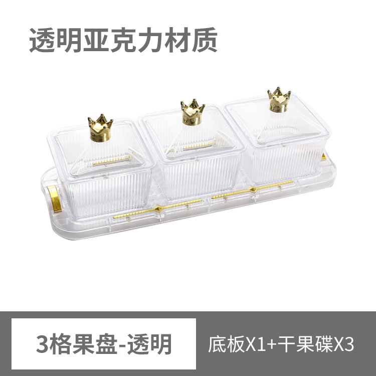 transparent snack plate three-piece set [3 dishes + gold inlaid base