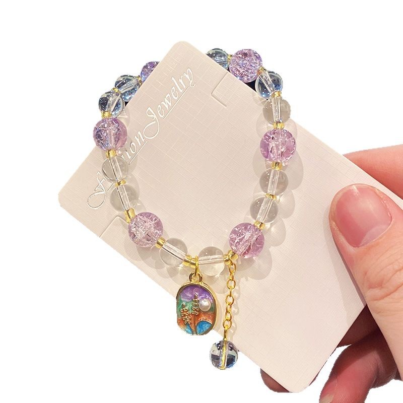 purple floral bracelet pearl bracelet (boxed with cardboard)
