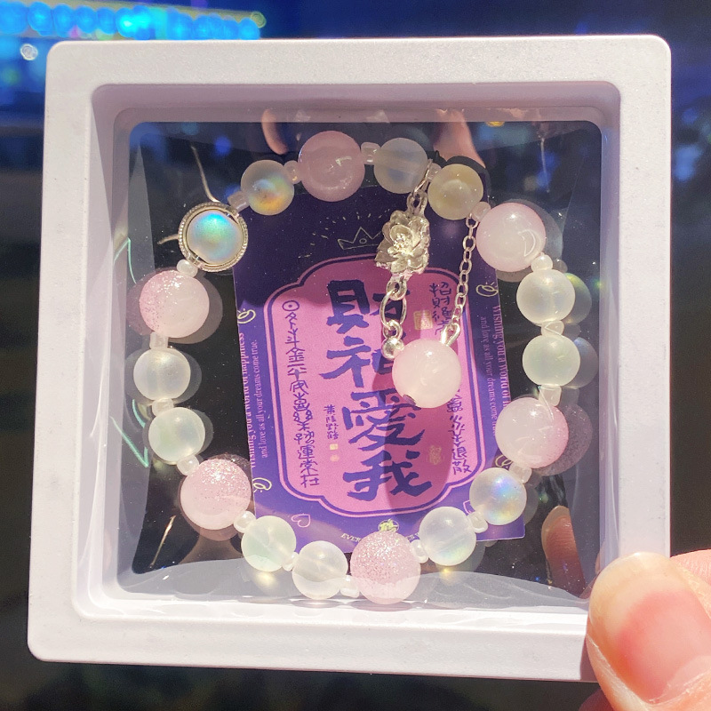 pink ice flowers glitter bracelet (boxed with cardboard)