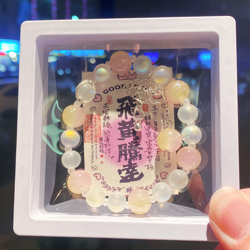 yellow and pink ice flowers glitter bracelet (boxed with cardboard)