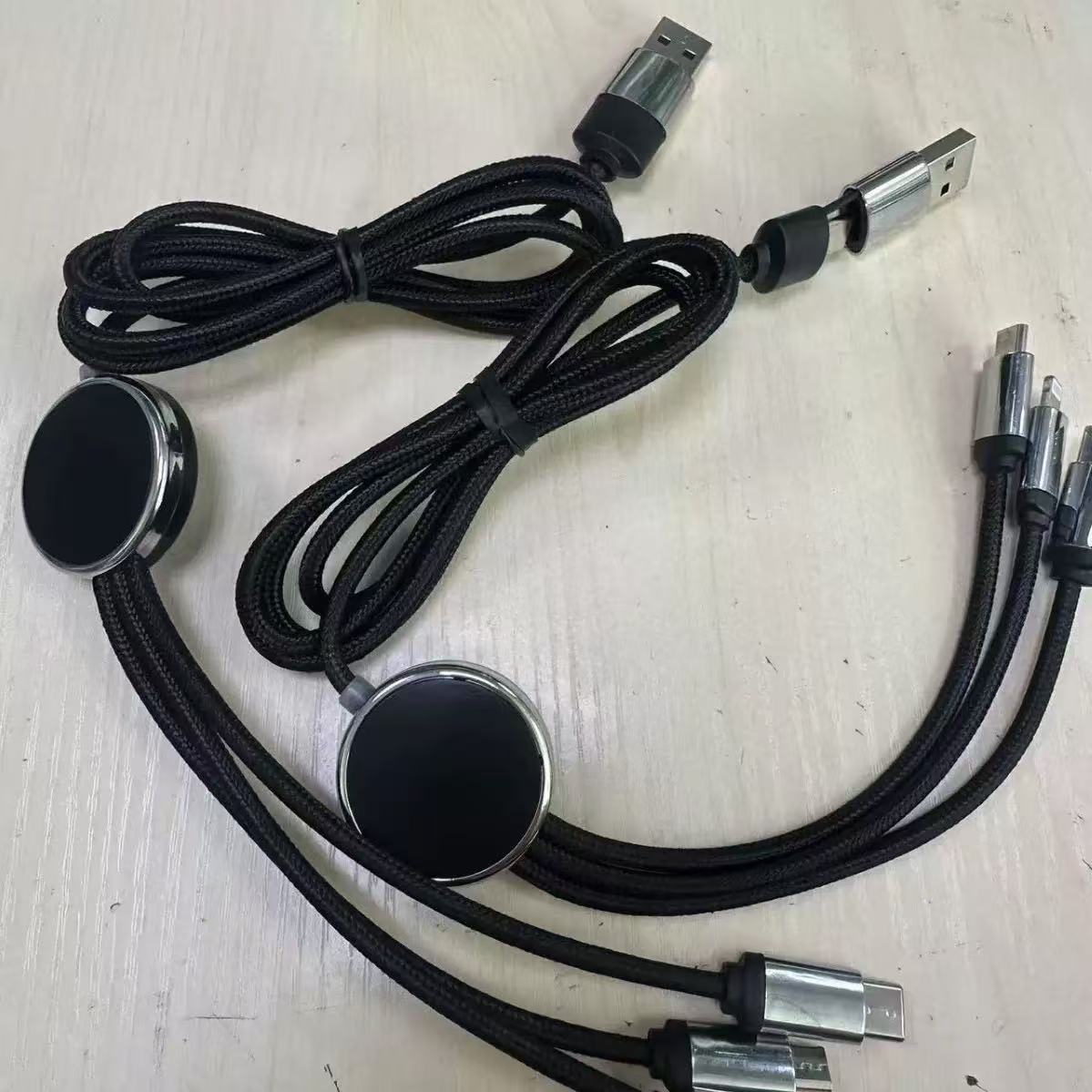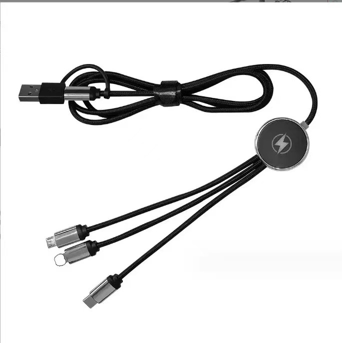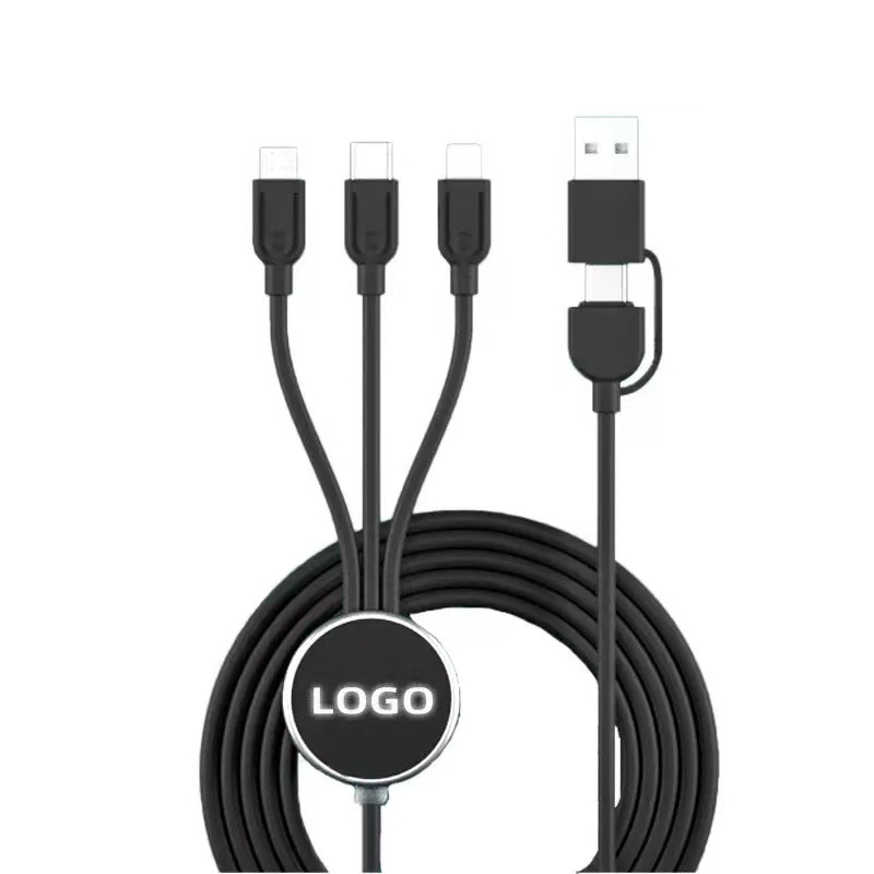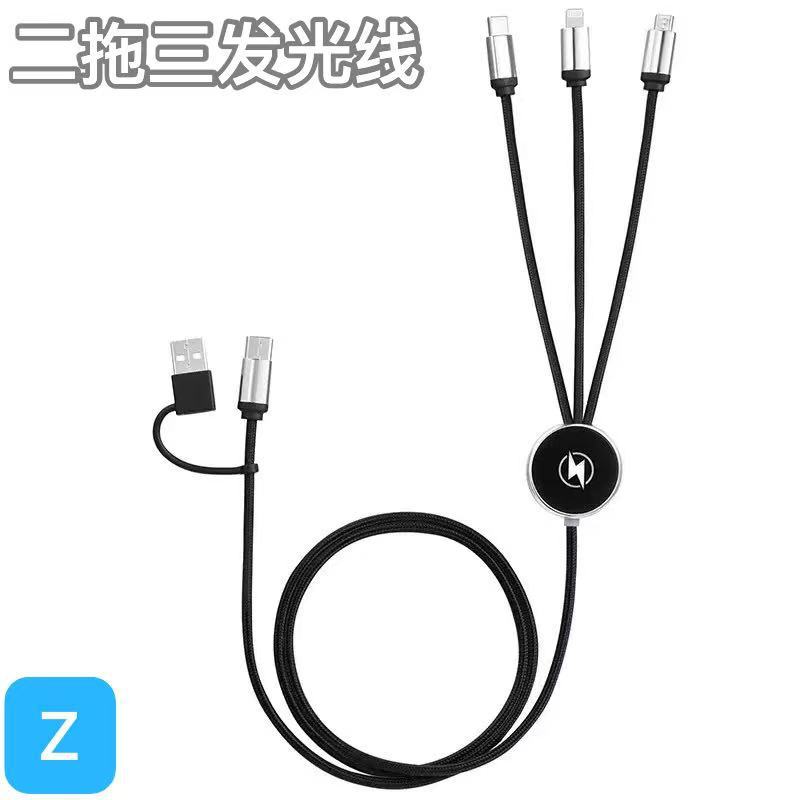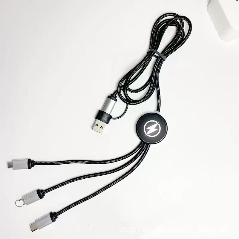 double input data cable two-drag three luminous logo braiding thread six-in-one led multi-function charging 中文版