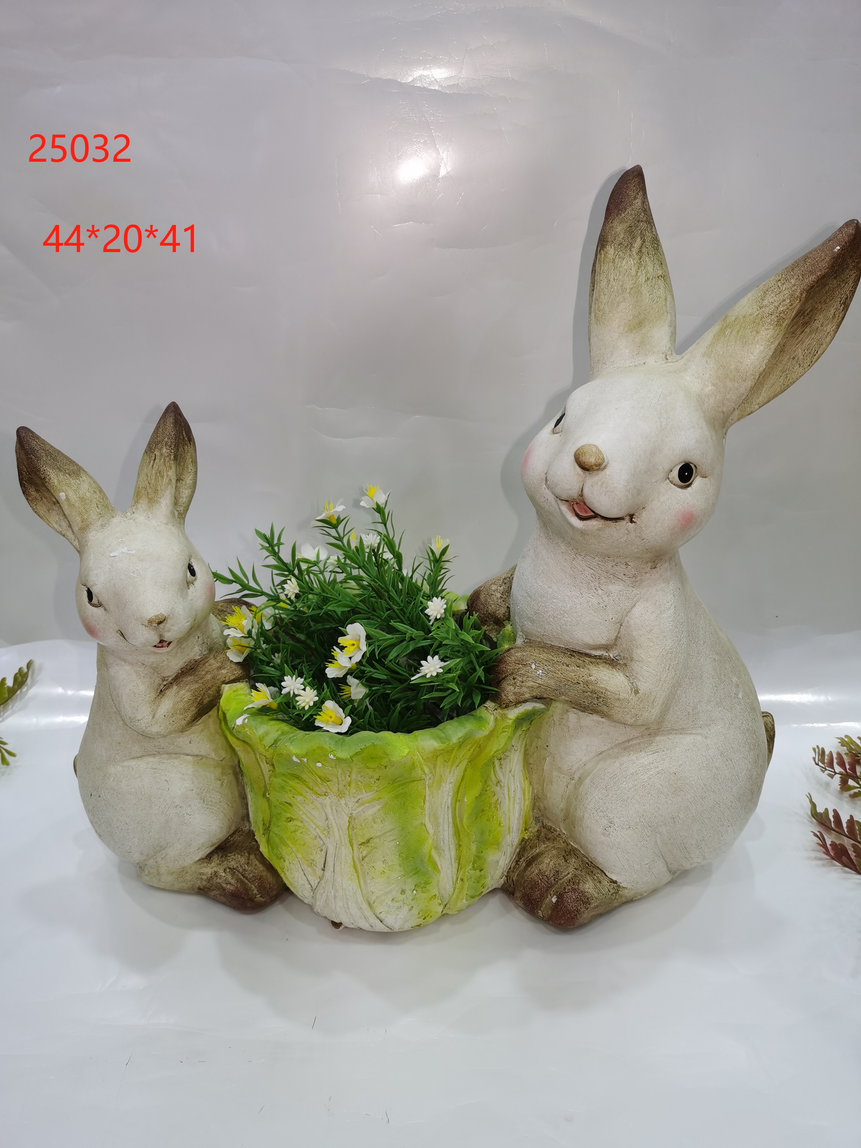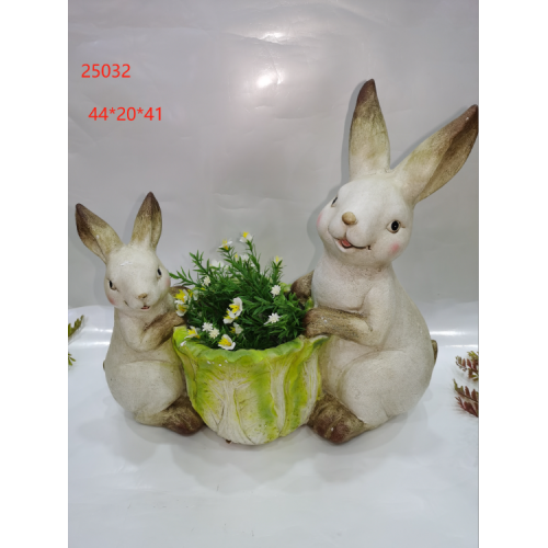 resin indoor outdoor garden decoration rabbit mother rabbit son holding cabbage flower pot 中文版