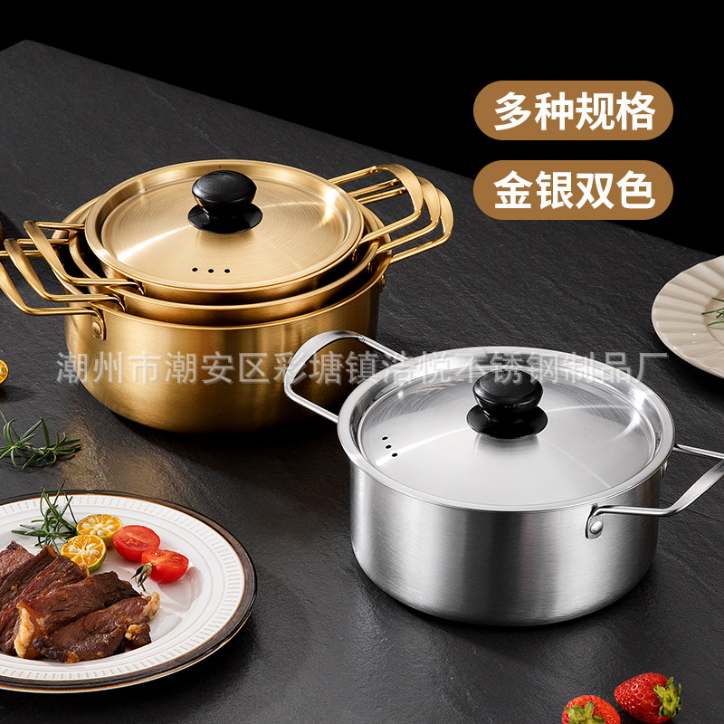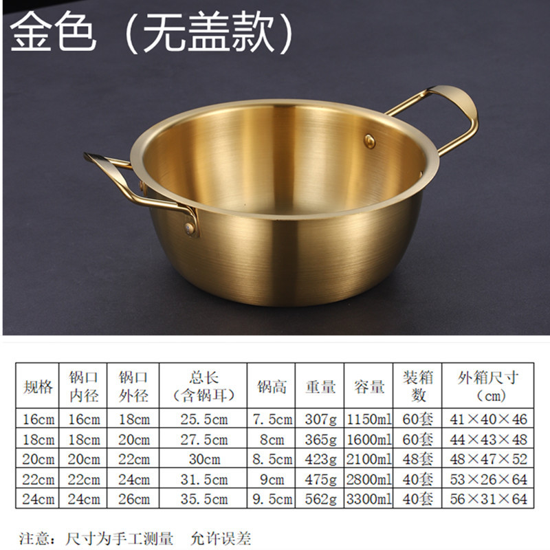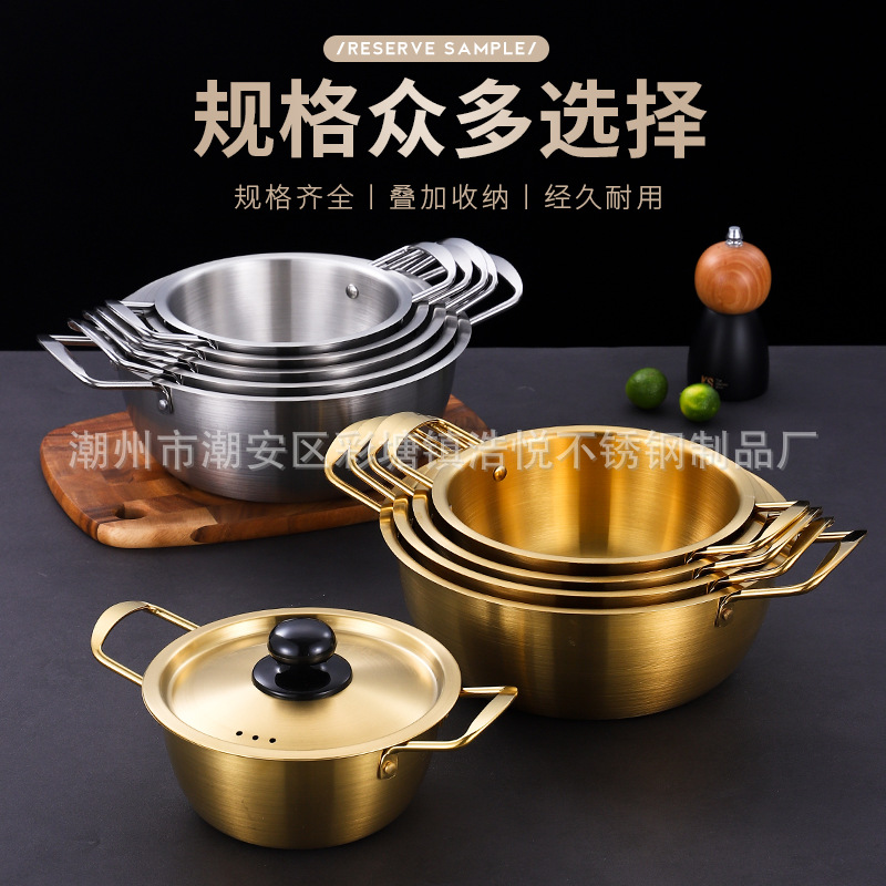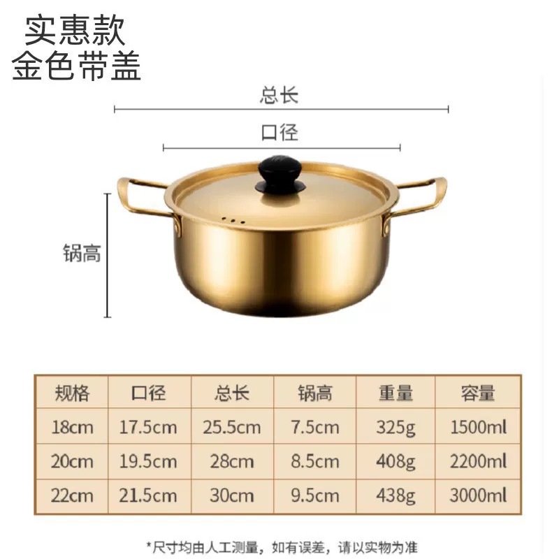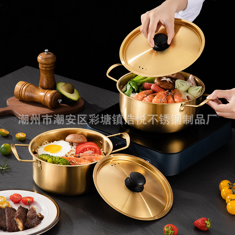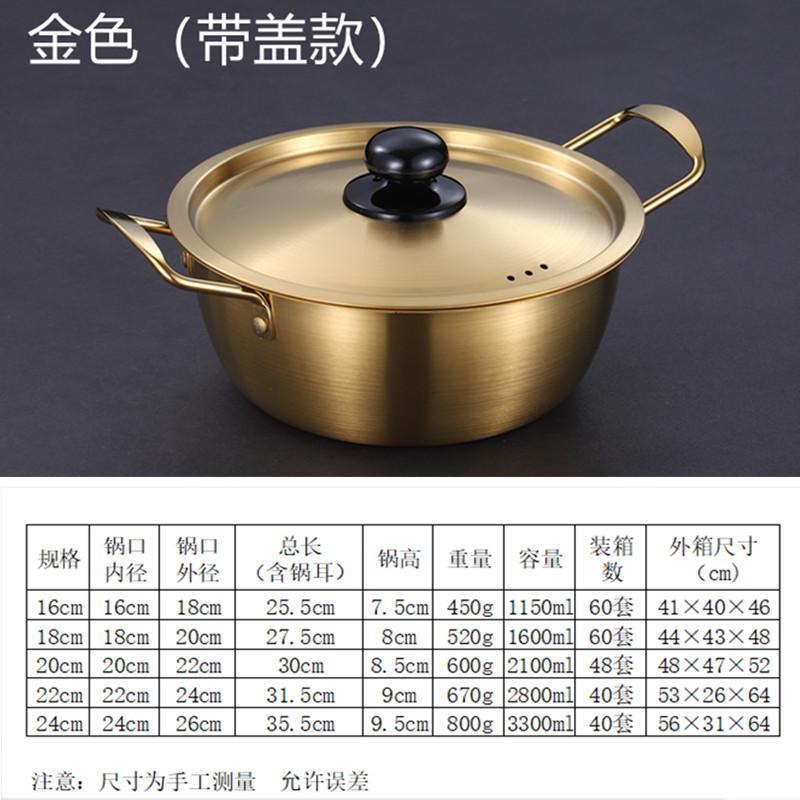Product name: Stainless Steel Korean Style Ramen Pot, Golden Ramen Pot, Internet Celebrity Single Person Hotpot with Lid, Yellow Small Pot