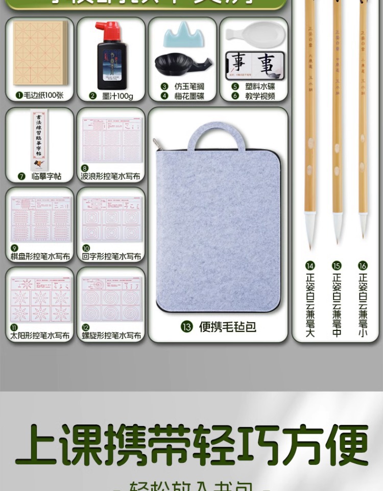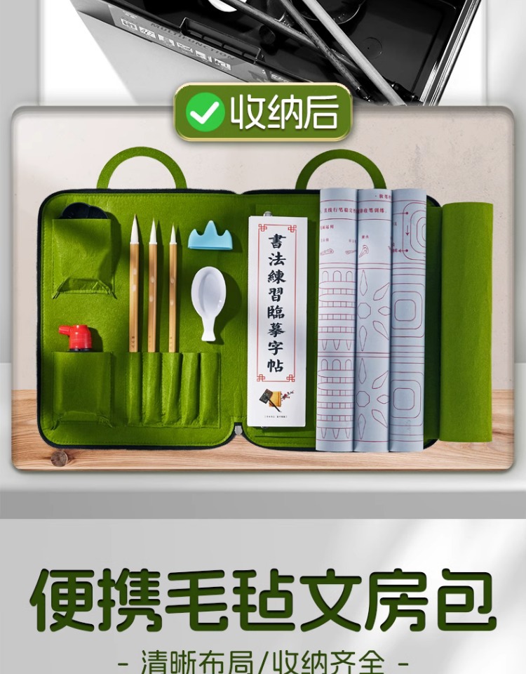 [green】 felt calligraphy bag