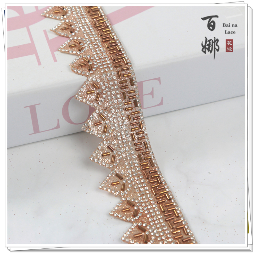 Product Name: BJ019 Triangle Bead Tube Water Drill Weaving Belt Hot Melting Back Glue Drill Sticker Clothing Belt Shoes Bag Edge Drill Chain Wholesales