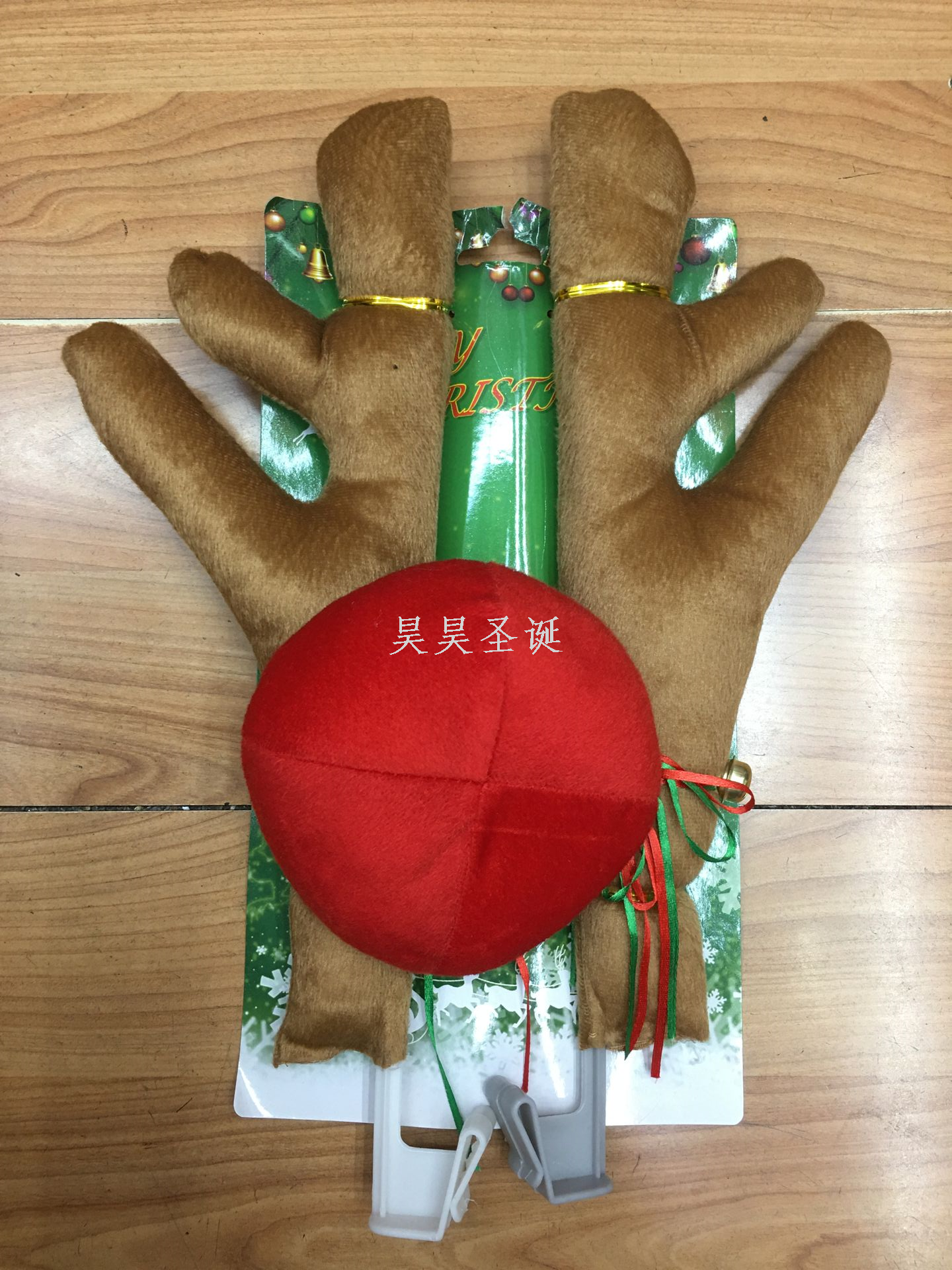 cross-border dark brown brown red car antlers short plush car decorations christmas decoration props 中文版