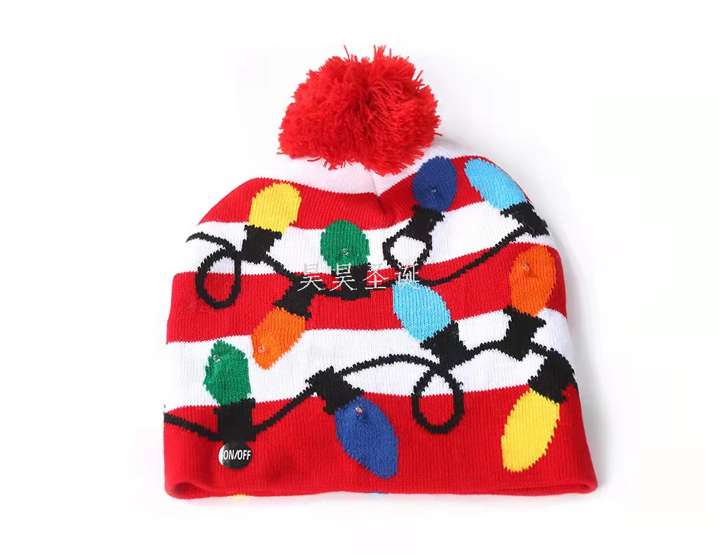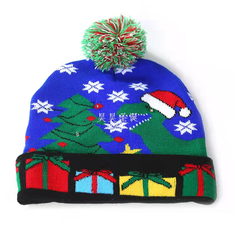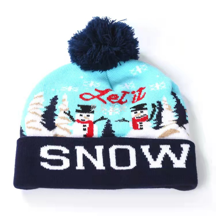 cross-border new arrival knitted hat wool hat men and women luminous christmas hat jacquard fur ball knitted hat knitted hat wool hat 中文版