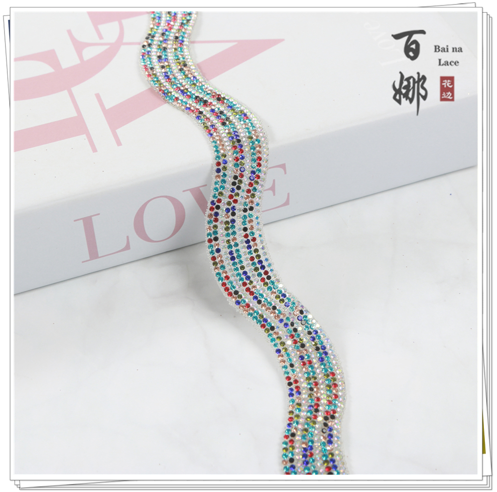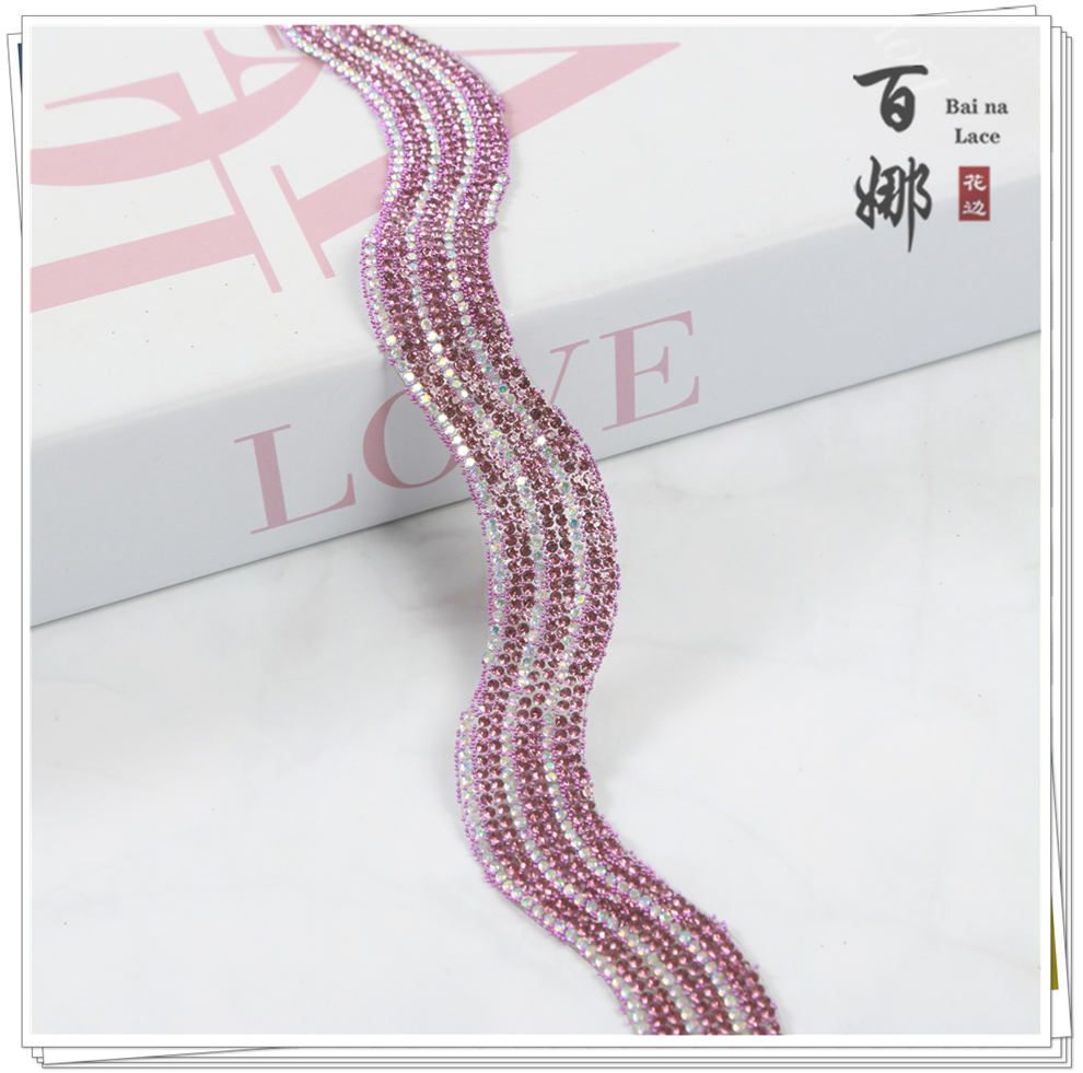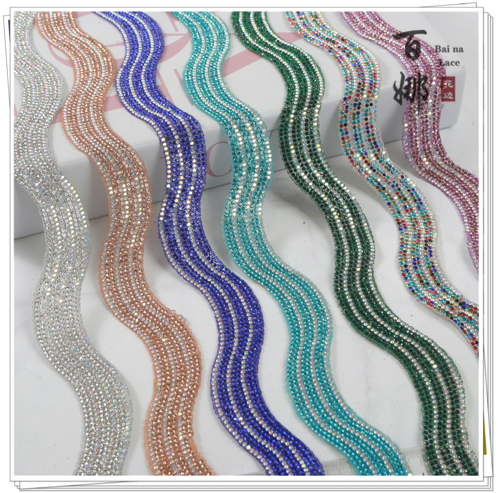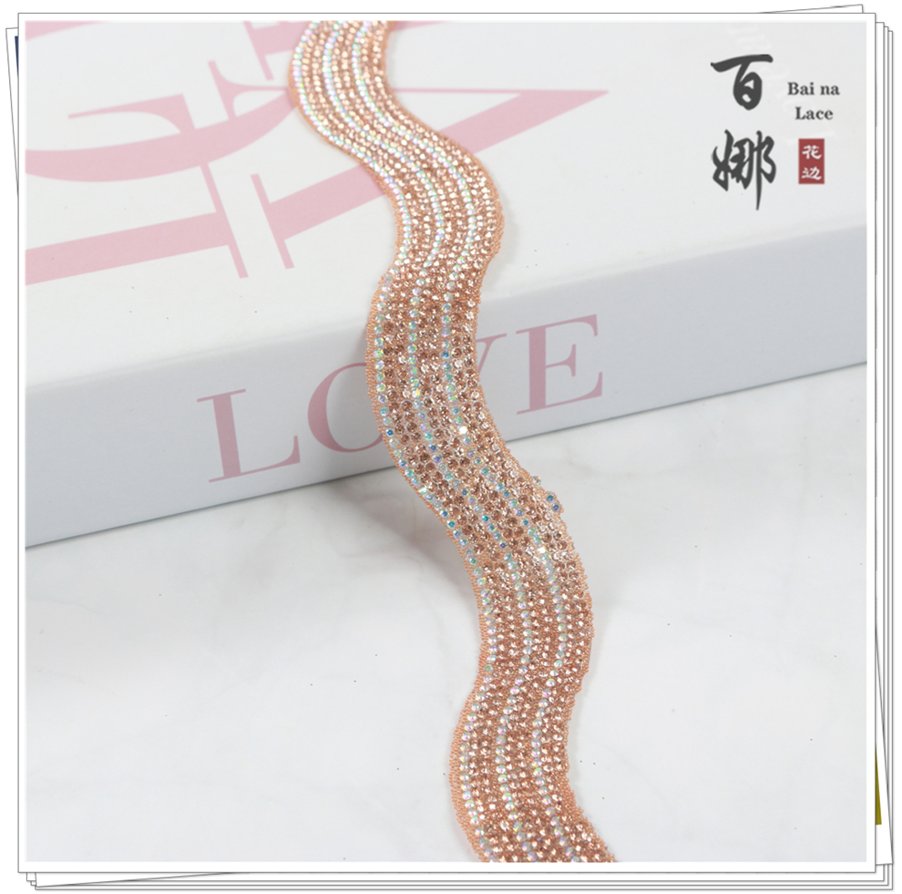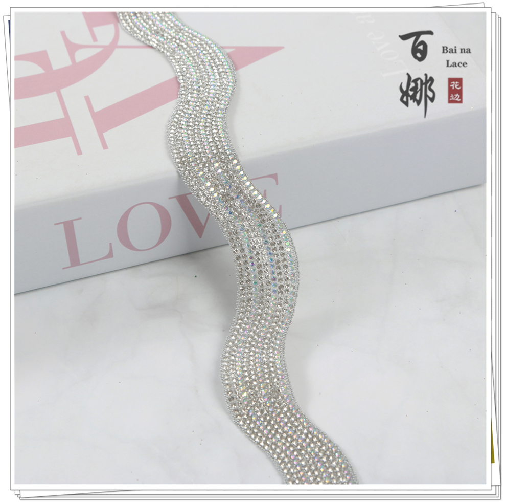 Product Name: Bright and Shining S-shaped Fashion Handcrafted Rhinestone Edge Lace Fabric Accessory for DIY Jewelry Decorative Supplies Wholesale