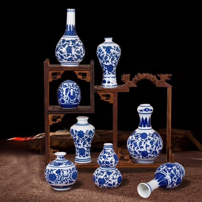 small size blue & white vase 7 pieces in a group without blessing eggs