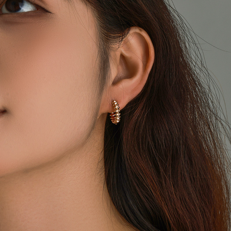 Xu Ping jewelry stud ear clamps high-end female fashion personality bullet head plated 18K gold earrings simple earrings