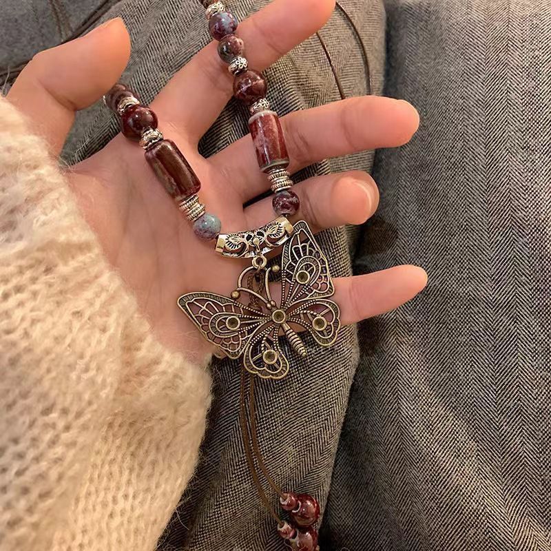 antique butterfly long necklace